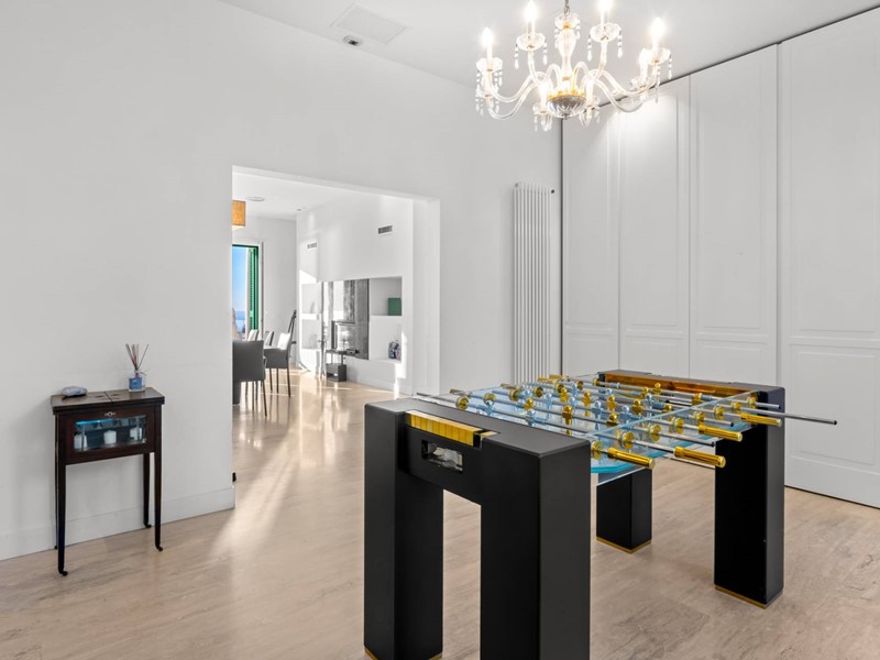 Con i suoi 719 mq distribuiti su due piani, la villa rappresenta un inno al lusso e alla raffinatezza. Gli interni, caratterizzati da una fusione impeccabile di materiali pregiati come marmi e legni nobili, offrono ambienti luminosi ed eleganti, curati nei minimi dettagli.