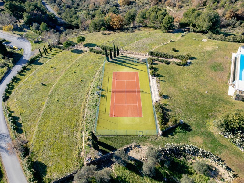 Un maestoso viale in pietra conduce alla proprietà, circondata da un giardino di rara bellezza di circa 2 ettari. Questo paradiso verde alterna prati allinglese, uliveti secolari e scorci mediterranei arricchiti da ginestre e cactus, in un perfetto equilibrio tra natura e design paesaggistico.