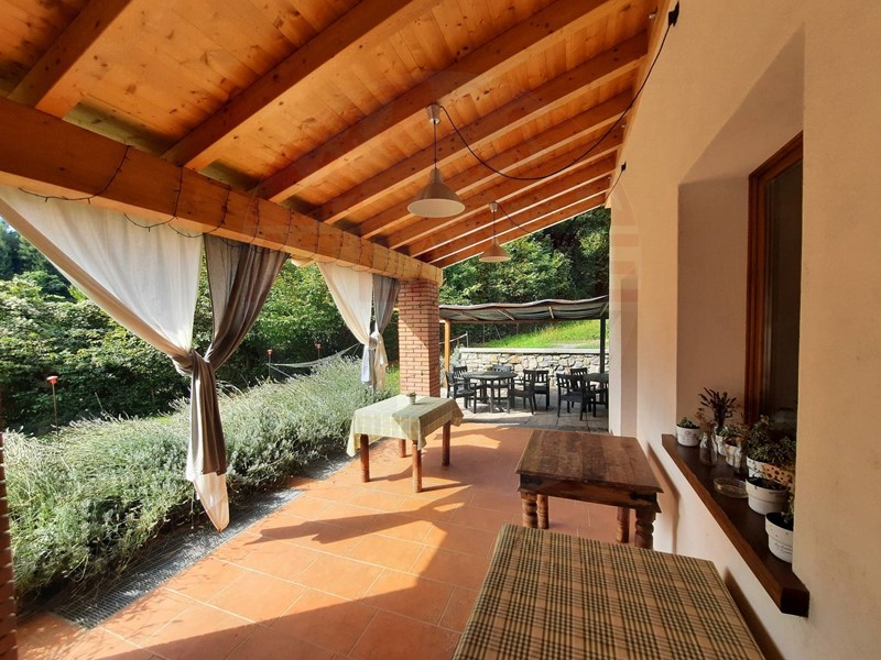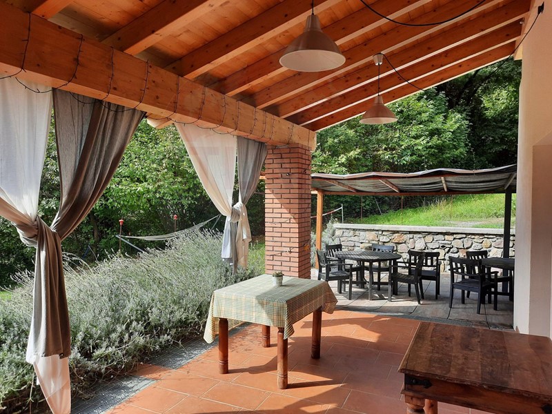 La cascina è attorniata da giardino, prato ad uso parcheggio e orto, confinante con castagneto e area agricola, (totale mq. 7.000),