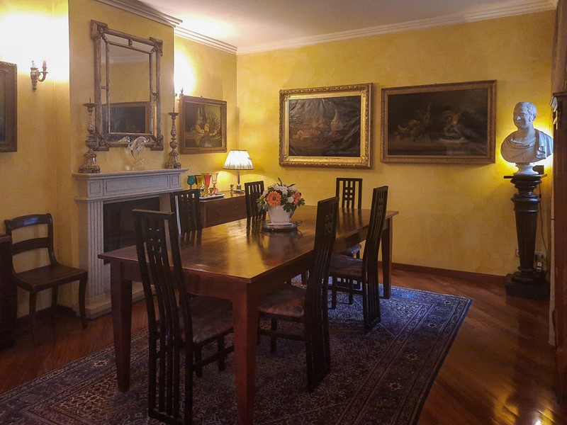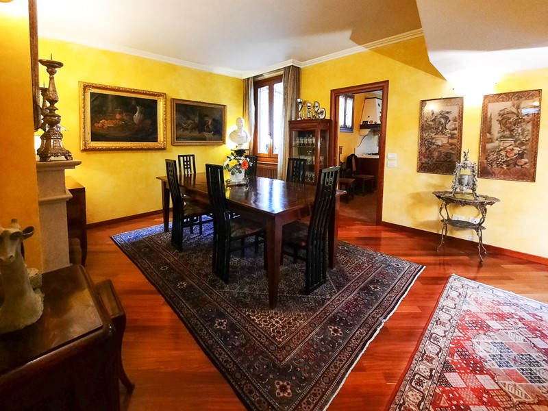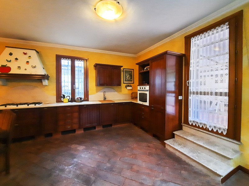 Il piano terra ampio e ben suddiviso permette di godere di un'ampia zona salotto conversazione con camino vicino all'ingresso, una sala da pranzo anch'essa dotata di camino passante con quello della zona soggiorno, dalla grande sala pranzo si intravvede la grande cucina con zona pranzo, la bella scala d'accesso ai piani superiori. Un disimpegno, un ingresso di servizio e un servizio igienico per gli ospiti completano con l'accesso alla spaziosa lavanderia e cantina, il piano terra.
