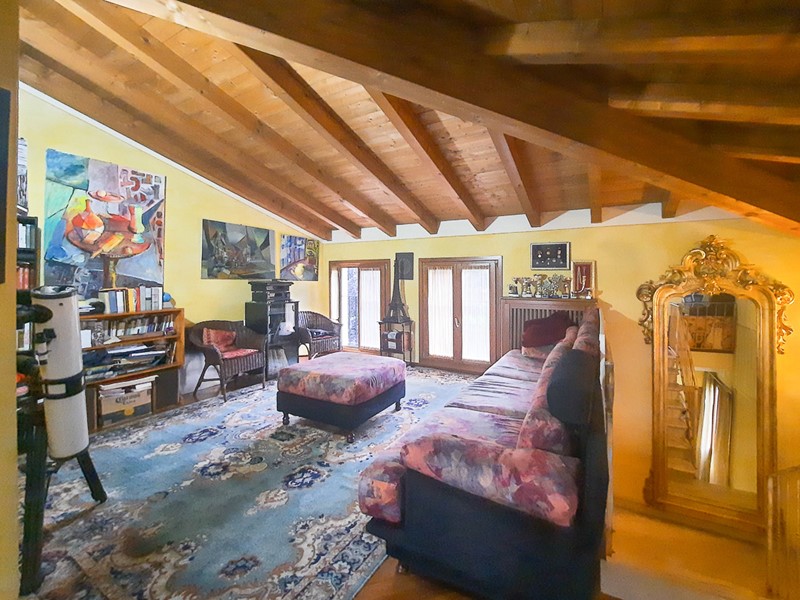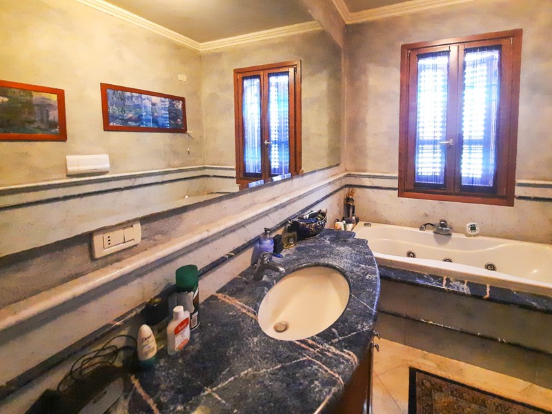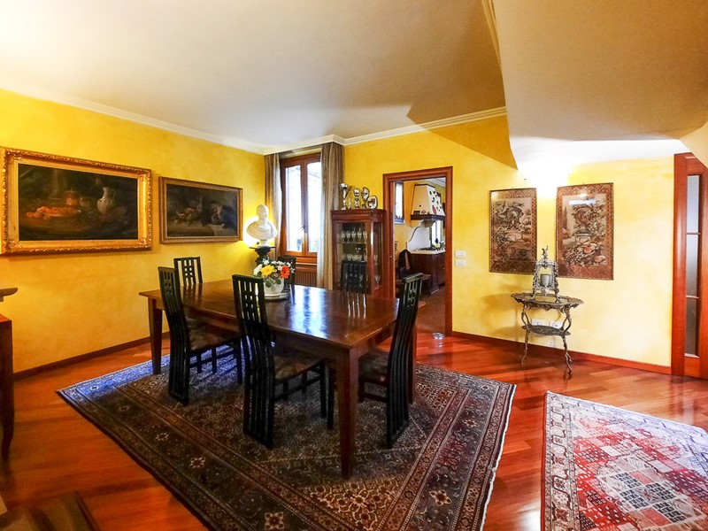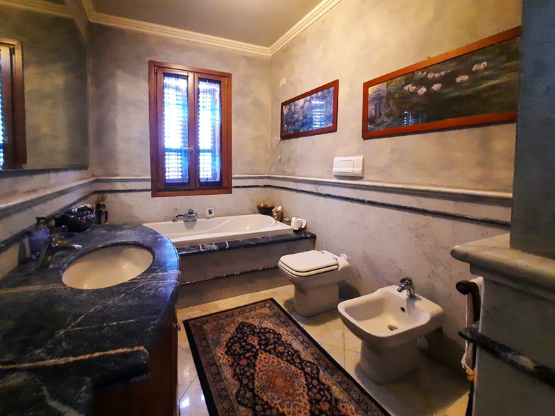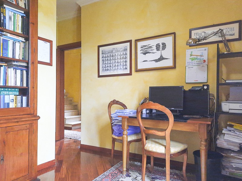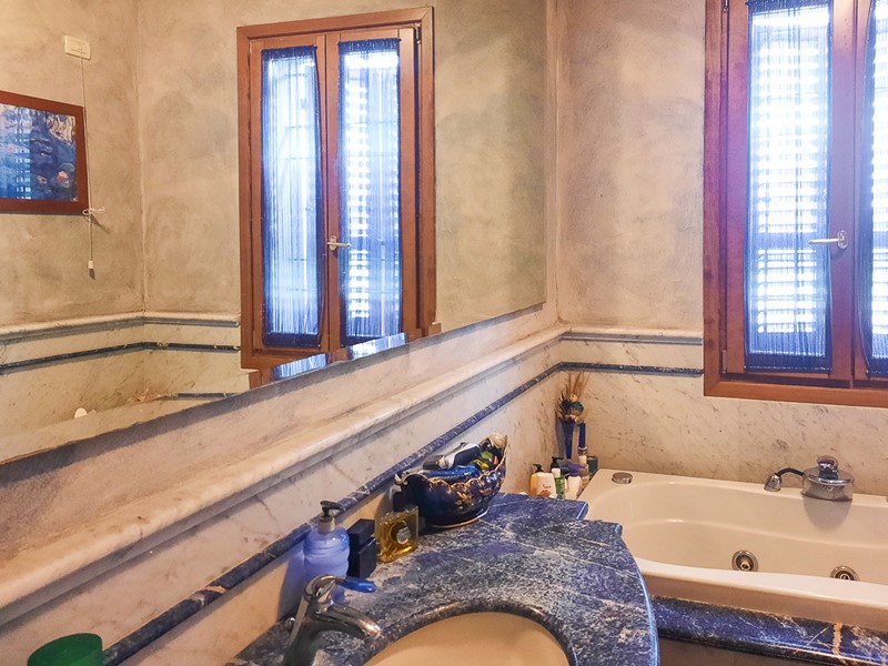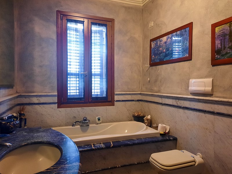 Dall'elegante scala in marmo, si giunge anche al piano sottotetto con travi a vista in cui si trovano un bellissimo open-space e un bagno dalle finiture signorili in linea con tutta l'abitazione