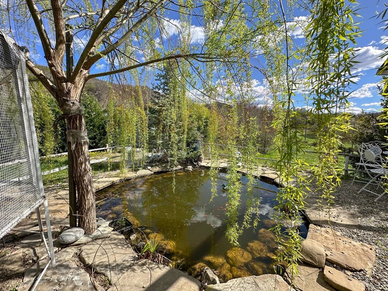 La proprietà include 4 ettari di terreno con campi, boschi, 120 piante di nocciole ed il laghetto nel cortile davanti casa, oltre a pioppeto e tartufaia.