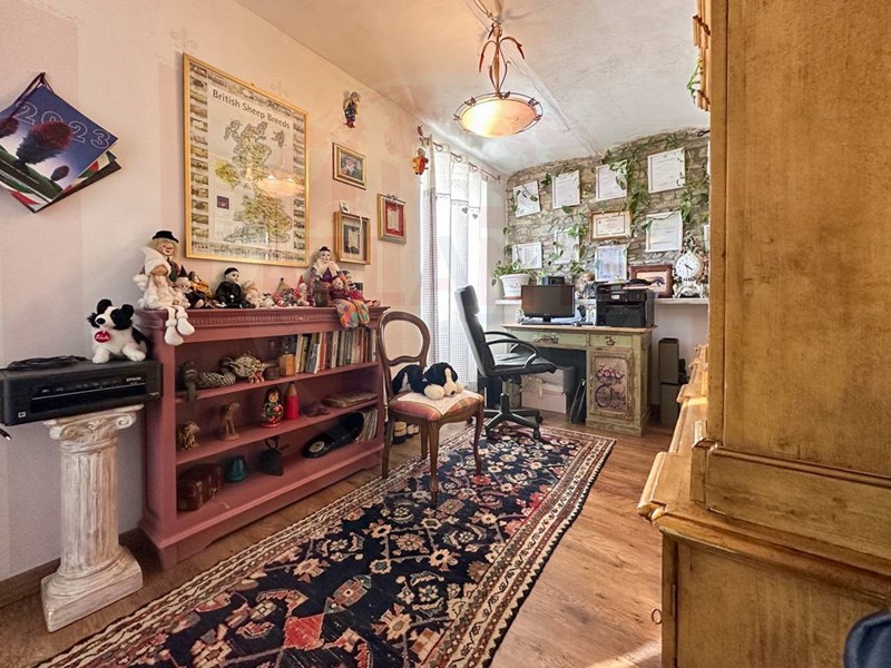 Parzialmente ristrutturata, al piano terra troverete cucina, sala, bagno e il grande laboratorio. Il riscaldamento è alimentato con idropellet, garantendo efficienza ed ecocompatibilità. Il primo piano offre due camere da letto, accesso al sottotetto e un grande locale di sgombero. Il piano seminterrato include una grande cantina e un ricovero attrezzi. Un fabbricato adiacente ospita locali di sgombero su due piani.