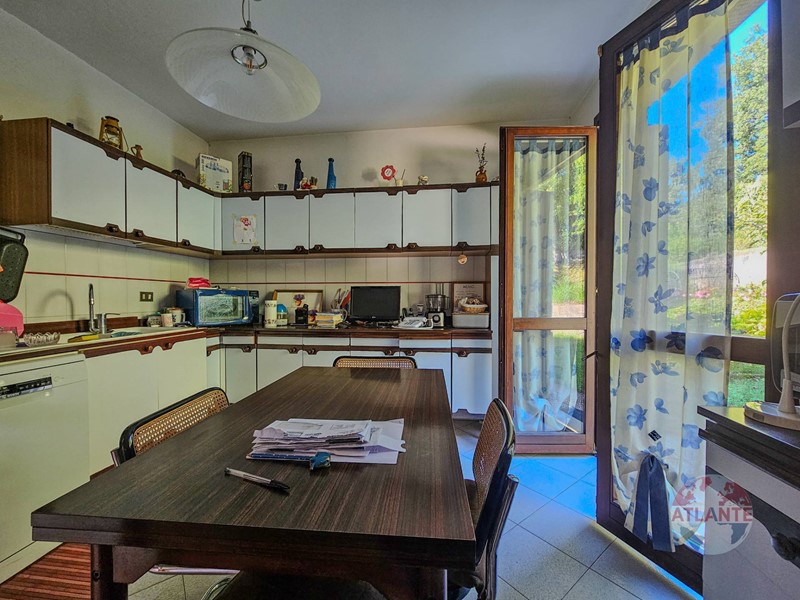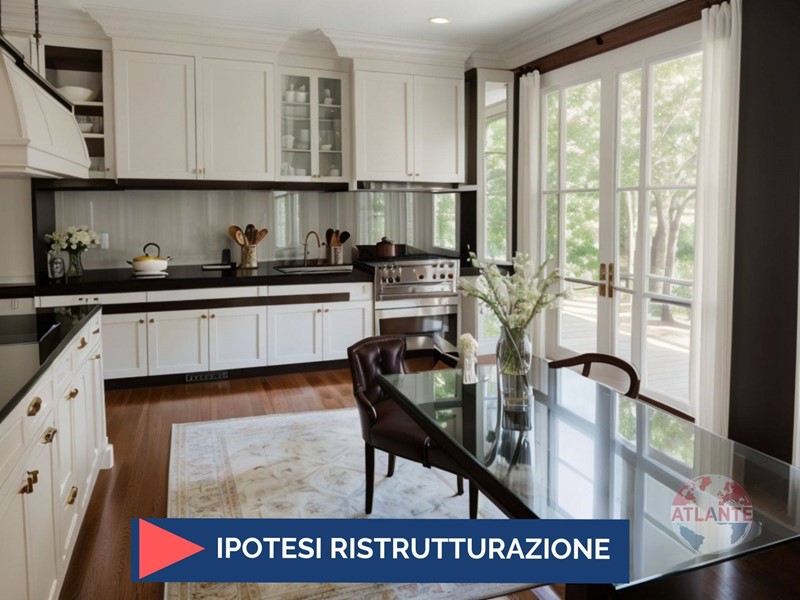 Cucina Funzionale: La cucina, spaziosa e ben organizzata, offre accesso al lato posteriore della villa, garantendo totale privacy nel tuo giardino esclusivo.