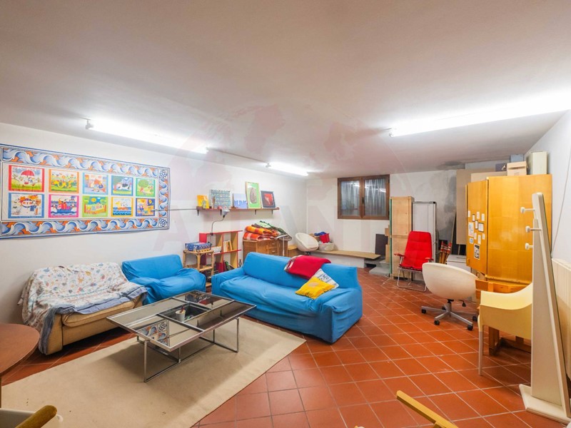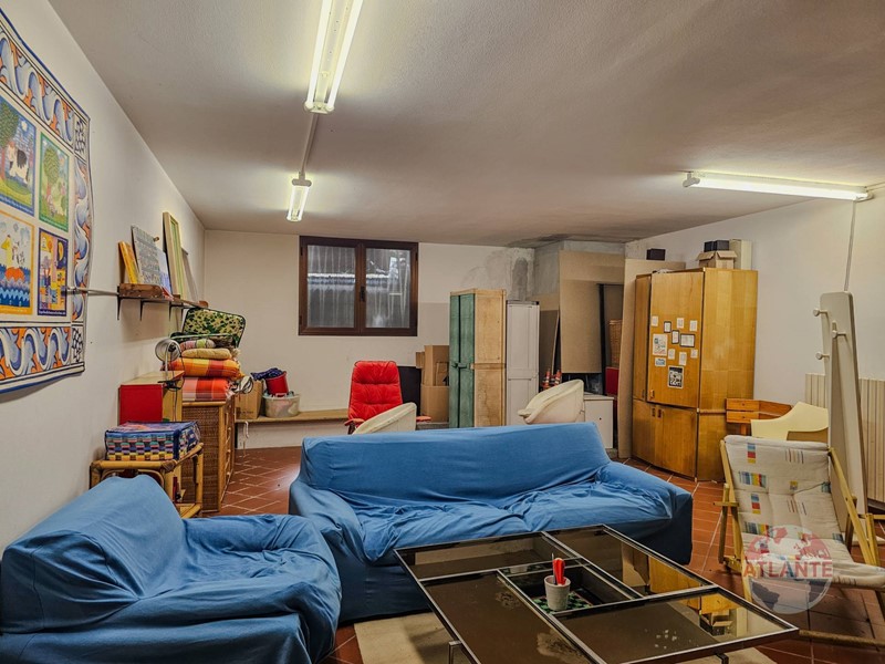 Piano Seminterrato Versatile: Questo piano offre ampi spazi, tra cui una taverna con camino, due stanze perfette per uno studio, una palestra o una sauna, una lavanderia e accesso diretto al box singolo.