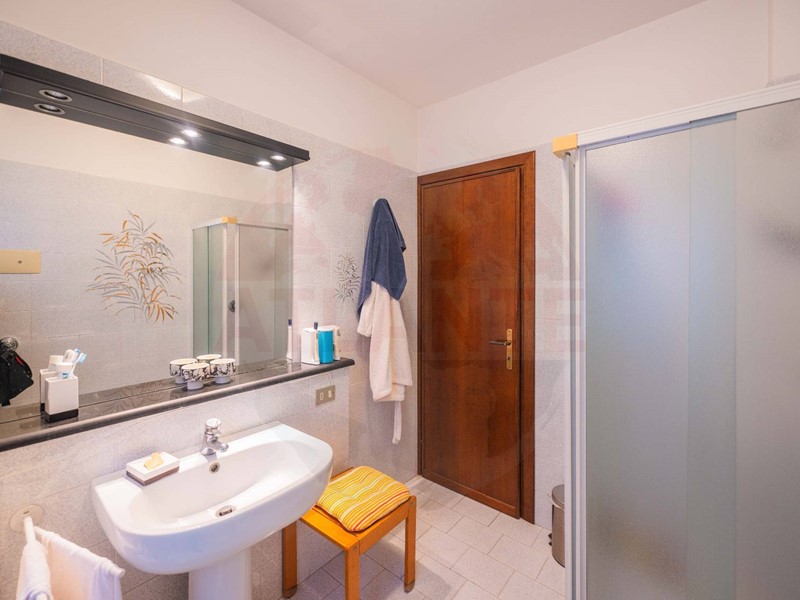 Zona giorno e zona notte: Al primo piano si sviluppa la zona notte con tre camere da letto matrimoniali di generose dimensioni e un bagno spazioso. Complessivamente, la villa dispone di cinque camere matrimoniali e quattro bagni.