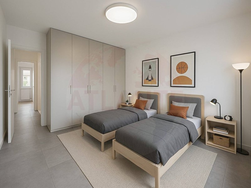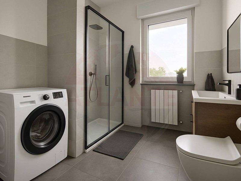 L'appartamento presenta degli spazi ampi, funzionali e versatili e si presenta con ingresso in luminosa zona giorno con cucina abitabile e accesso al balcone in tutta lunghezza, atrio, spazioso bagno lavanderia con sanitari sospesi e doccia, camera matrimoniale con accesso al balcone sul retro e seconda camera doppia dotata di vano cabina armadio.