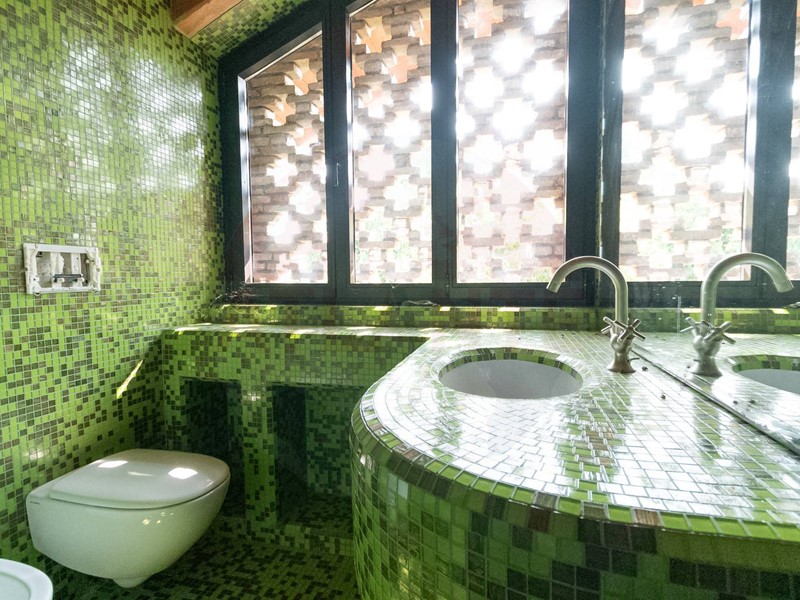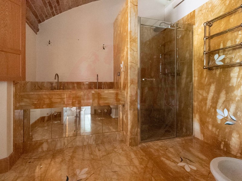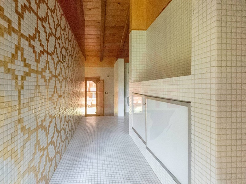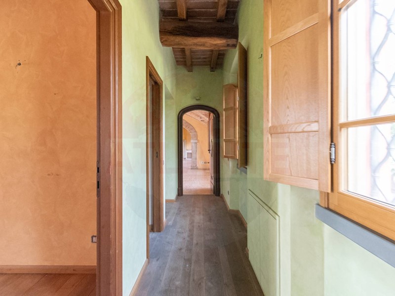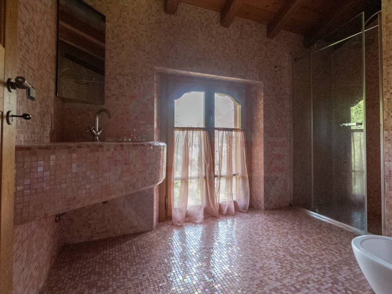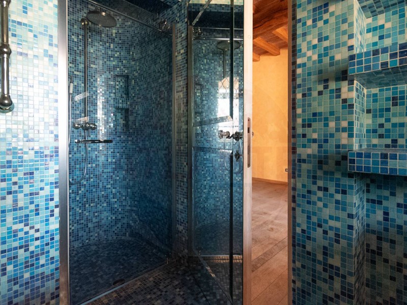 Resulting from the complete renovation of a large farmhouse, the main building, equipped with a geothermal system for underfloor heating and cooling, hosts three residential units served by an elevator. These units boast high-end finishes such as marble and refined mosaics, wide-plank parquet flooring, newly constructed vaulted ceilings, and imposing fireplaces.