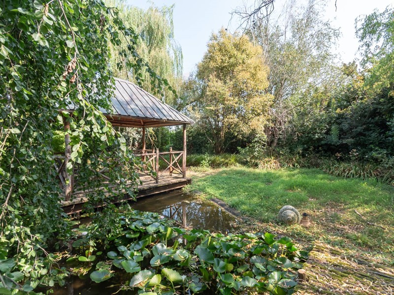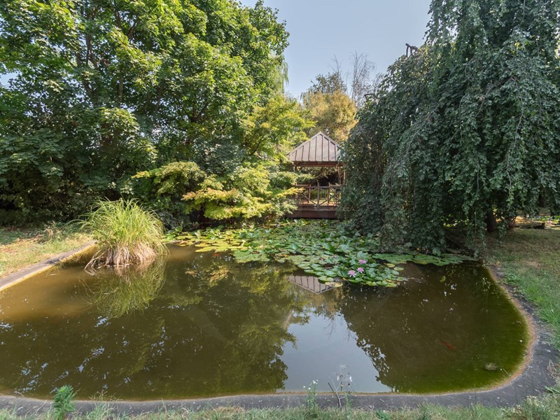 Questa proprietà esclusiva è esternamente impreziosita da unimponente piscina da ben ml. 8x16 con relativa zona docce, un laghetto artificiale con ponticello che conduce ad un riservato gazebo, parco servito da impianto di irrigazione, piloni motorizzati daccesso al viale esclusivo, cancello motorizzato.