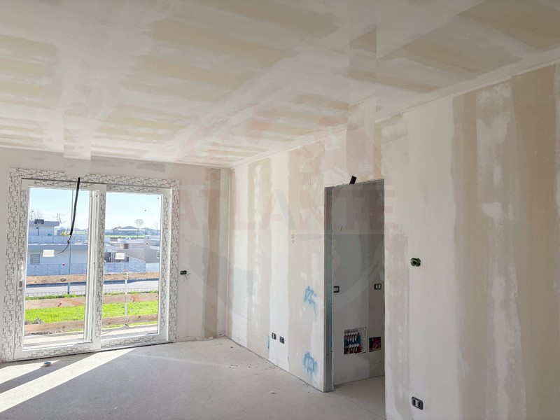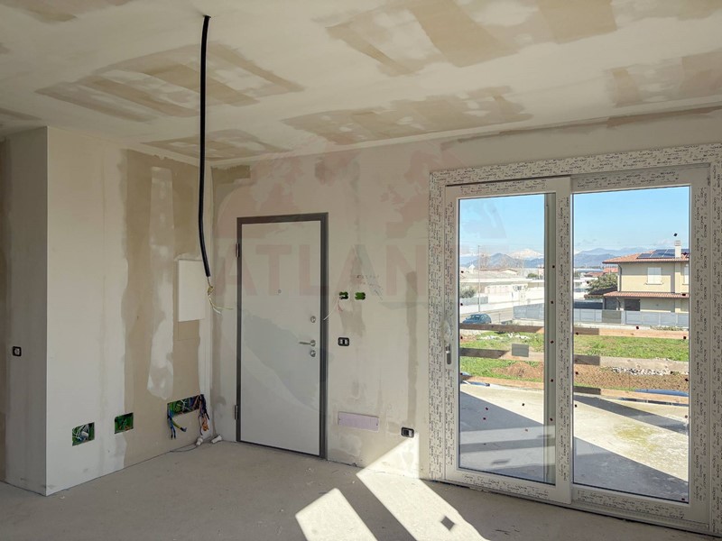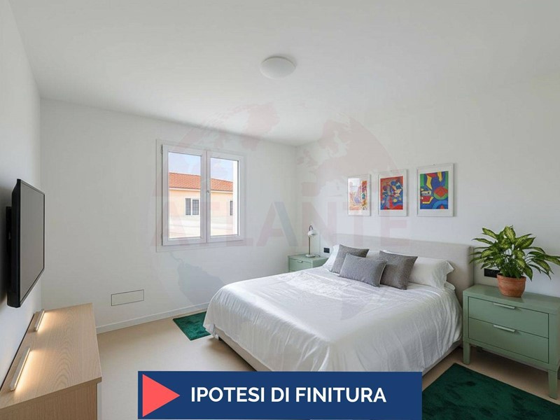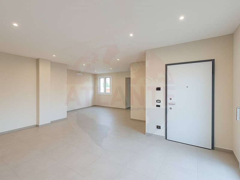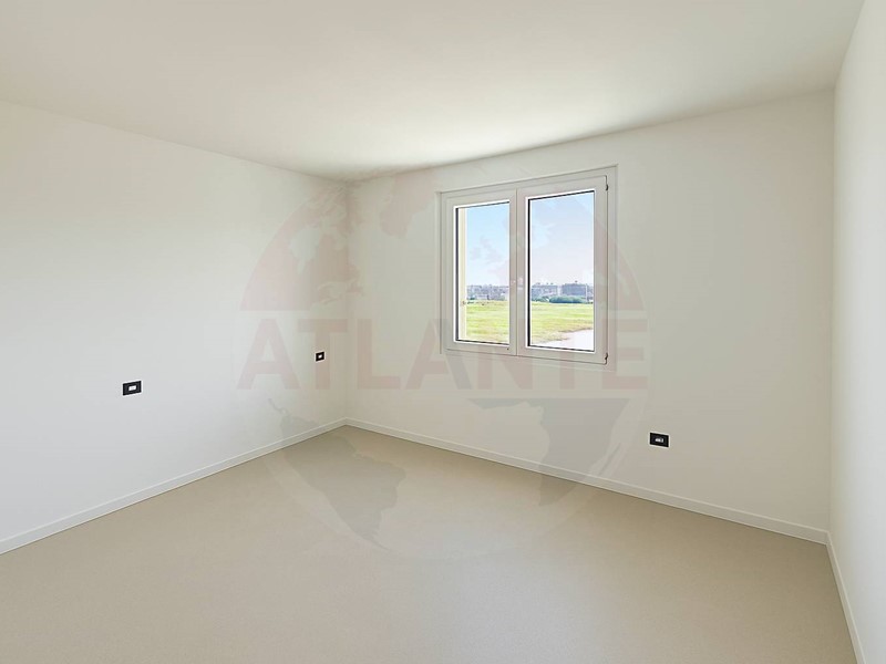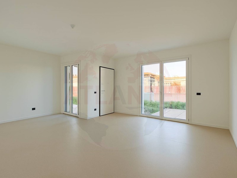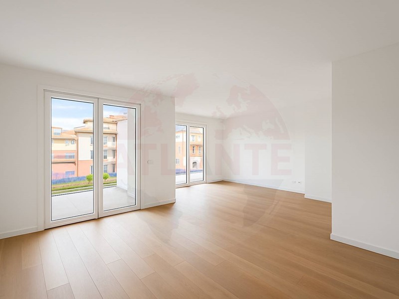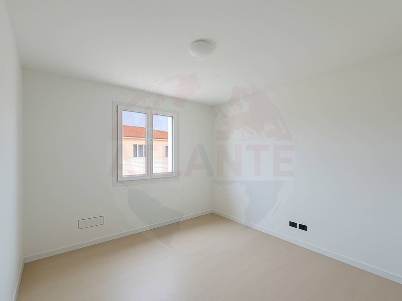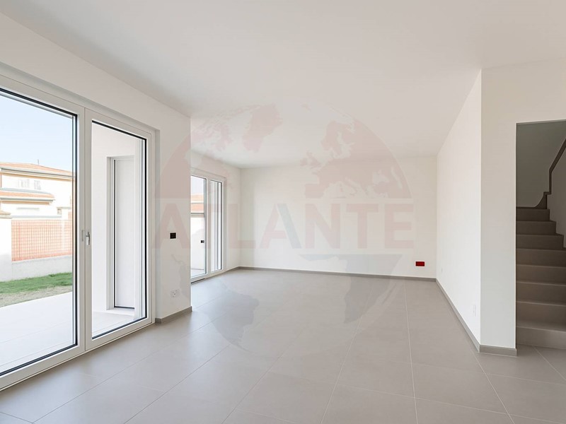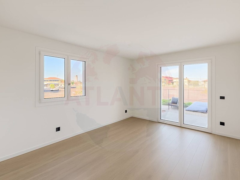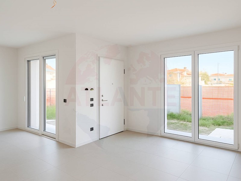 L'appartamento è così composto: Ingresso in spaziosa e luminosa zona giorno open space con accesso al porticato e al giardino frontale, disimpegno, camera padronale con cabina armadio e accesso alla corte pavimentata privata sul retro, camera doppia e bagno con doccia.