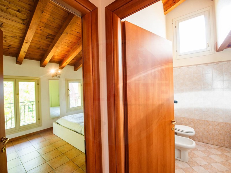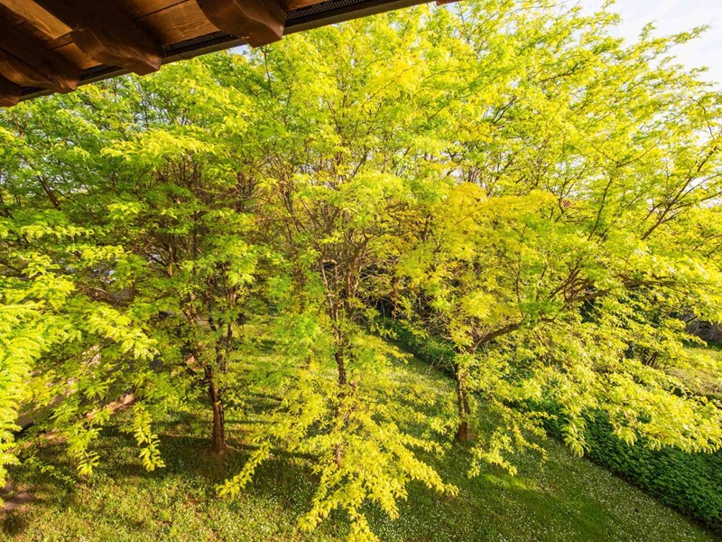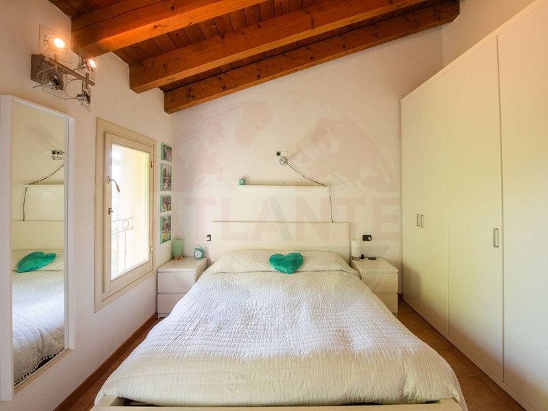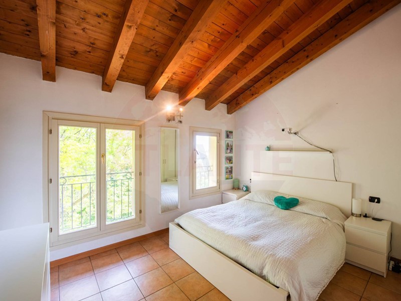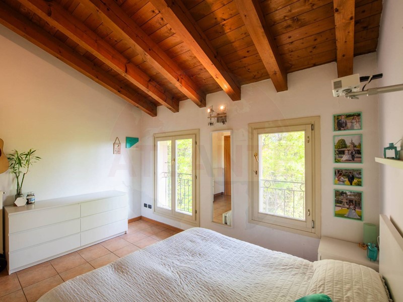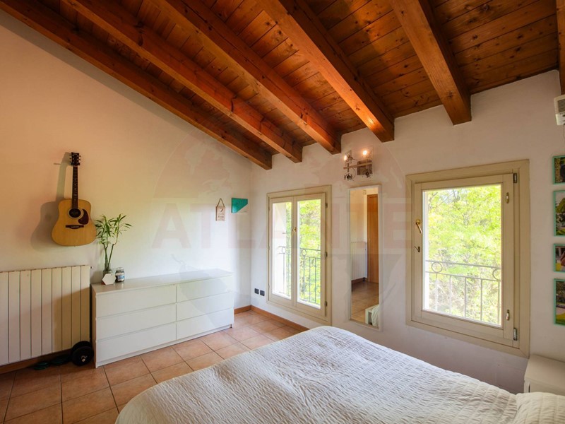 Infine la camera da letto vero e proprio rifugio, un oasi di pace e tranquillità dove troviamo un meraviglioso affaccio sul verde e rigoglioso parco retrostante che grazie ai colori e suoni che solo la natura offre, creando così un'atmosfera estremamente serena e rilassante.