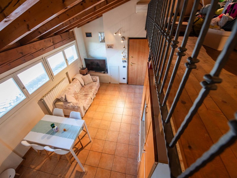 Entrando nell'abitazione troviamo un ampio e luminoso soggiorno dove poter pranzare comodamente o potersi rilassare su un morbido divano, completa la stanza un grazioso soppalco che può essere adibito a più soluzioni come un piccolo studio con libreria, una seconda zona relax oppure un ordinato ripostiglio dove riporre oggetti che non vengono utilizzati di frequente.