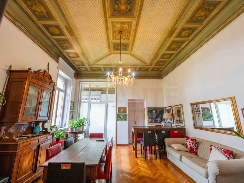Soffitti alti oltre 3 metri e pavimentazioni di pregio (parquet e ceramiche di recente posa) donano unatmosfera raffinata.