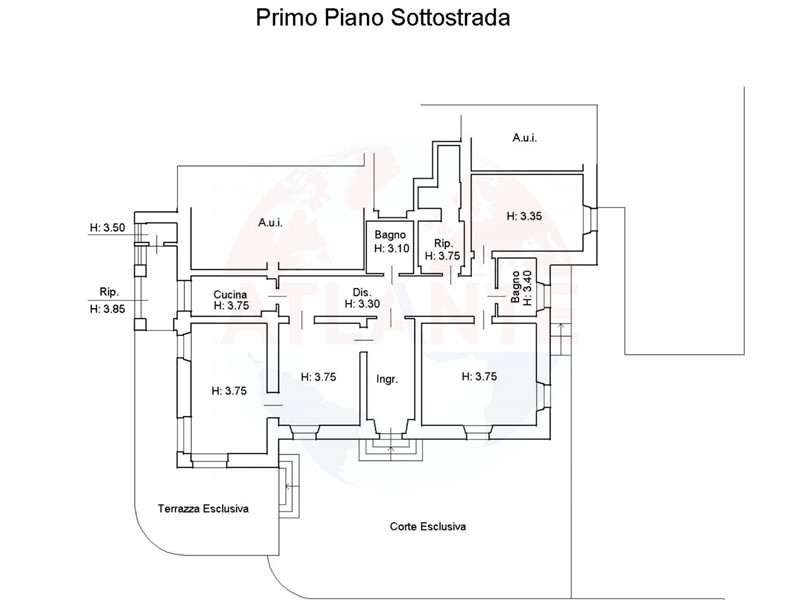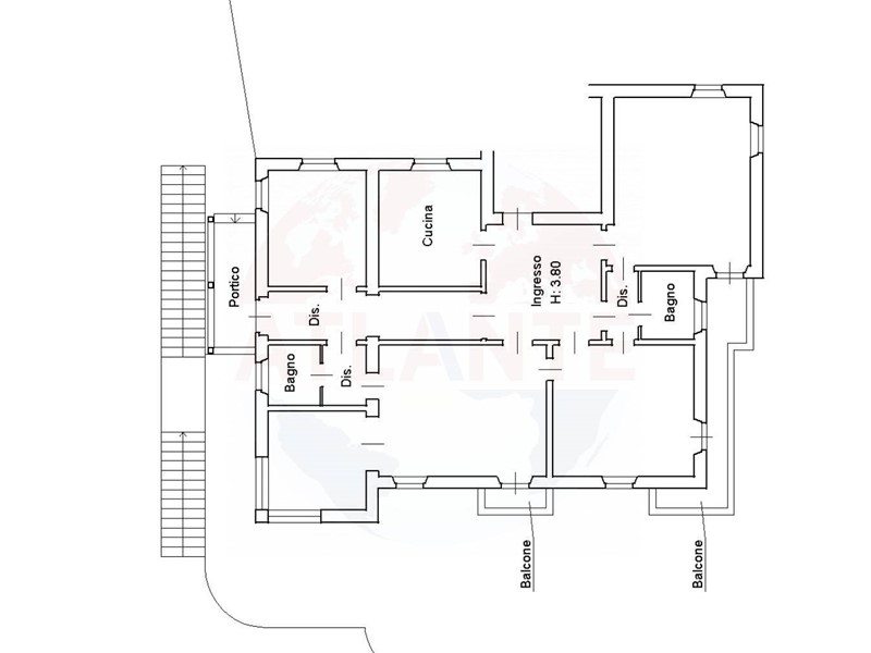 Consistenza: Ampio soggiorno, cucina separata, tre camere, due bagni, disimpegno, atrio, giardino, box