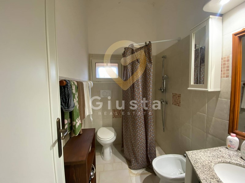 Il terreno è piantumato da 135 ulivi , e su di esso sussiste una costruzione di mq 50, composta da due camere, cucina e bagno, inoltre ampio garage.