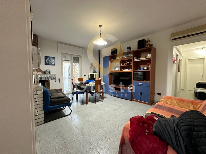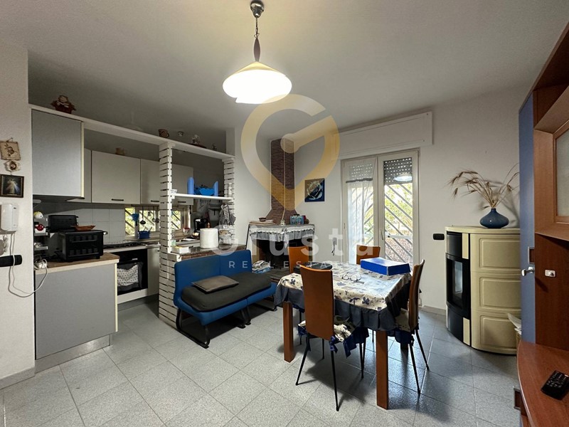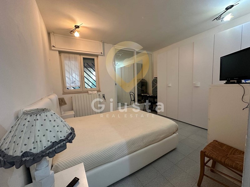 Questa villa ha un ampio giardino su 3 lati che la circonda, una veranda frontale e un porticato in legno sul lato sinistro. Entrando ci troviamo nel soggiorno con cucina da cui si accede poi alla zona notte con 2 camere da letto e un bagno.