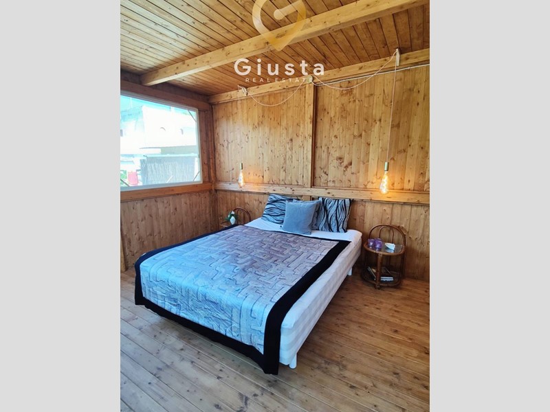 All'interno invece troviamo cucina, bagno e ampia camera da letto, per poi arrivare in una struttura in legno con living e un'altra camera da letto.