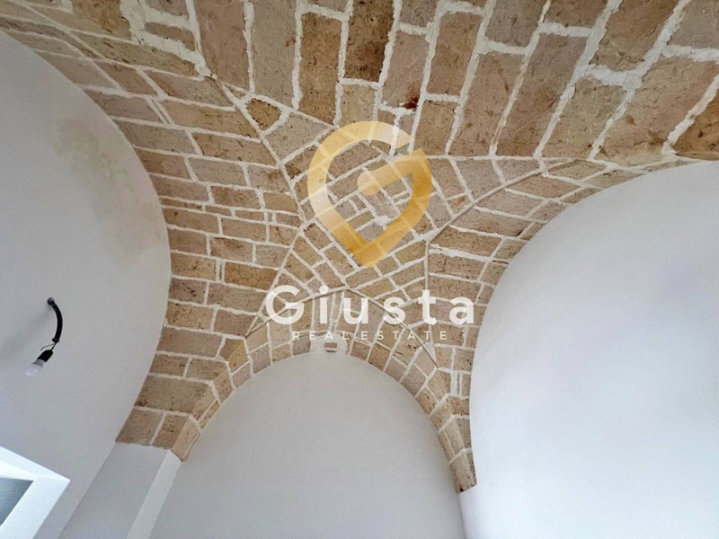 L'ingresso si apre su un accogliente soggiorno caratterizzato da volta a stella a vista e angolo cottura.