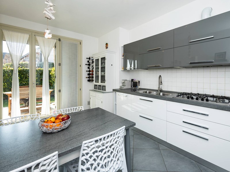 Gavirate. Proponiamo questa graziosa villetta semi indipendente , parzialmente ARREDATA. Questa soluzione offre tutti i vantaggi di un abitazione singola uniti a facilità di gestione. L'immobile si sviluppa su tre livelli. Al piano terreno troviamo la luminosa zona giorno che si affaccia, tramite ampie vetrate, agli spazi verdi , antistanti e retrostanti e al portico che permette un ampliamento delle zone abitabili. Questo piano è completato da un comdo ed elegante bagno e dalla cucina, abitabile ed ARREDATA.Una moderna e decorativa scala porta alla zona notte con tre camere e una cabina armadio: tutti corredati da armadiature su misura. La parte interrata offre una doppia taverna, un locale ripostiglio, bagno lavanderia e l'accesso al BOX DOPPIO.