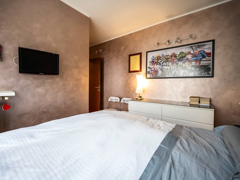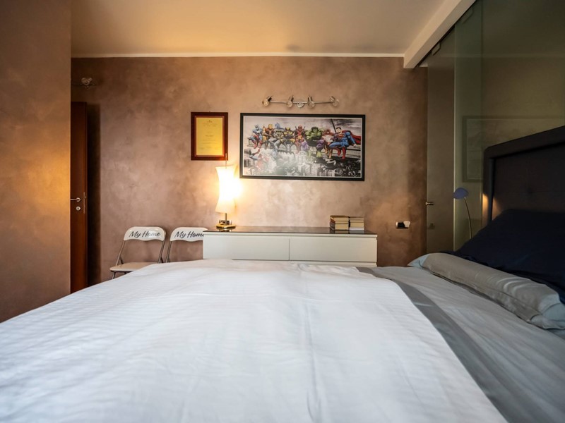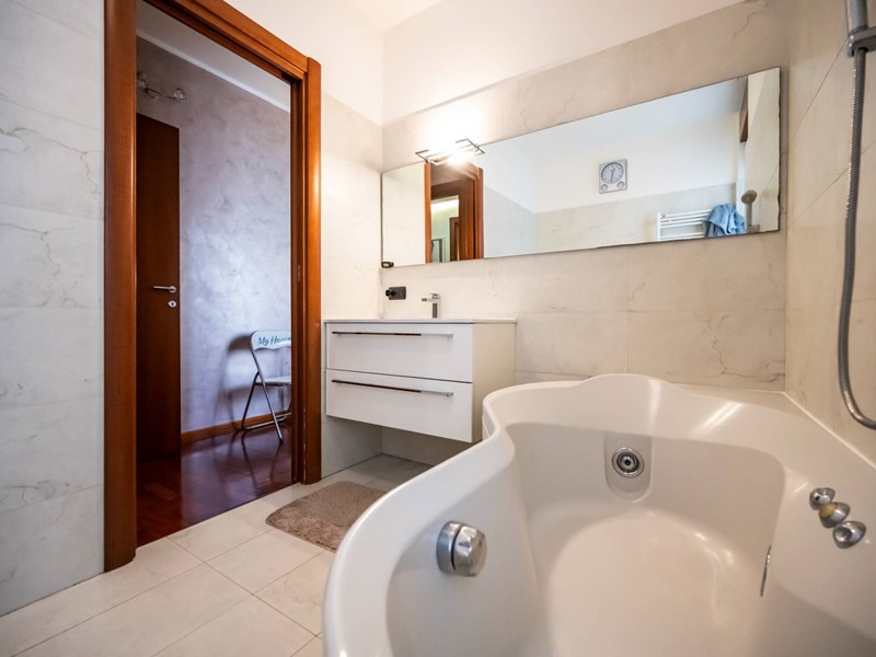 Zona notte: una spaziosa camera matrimoniale con cabina armadio e bagno en-suite dotato di vasca idromassaggio, una seconda camera con balcone e armadio a muro.