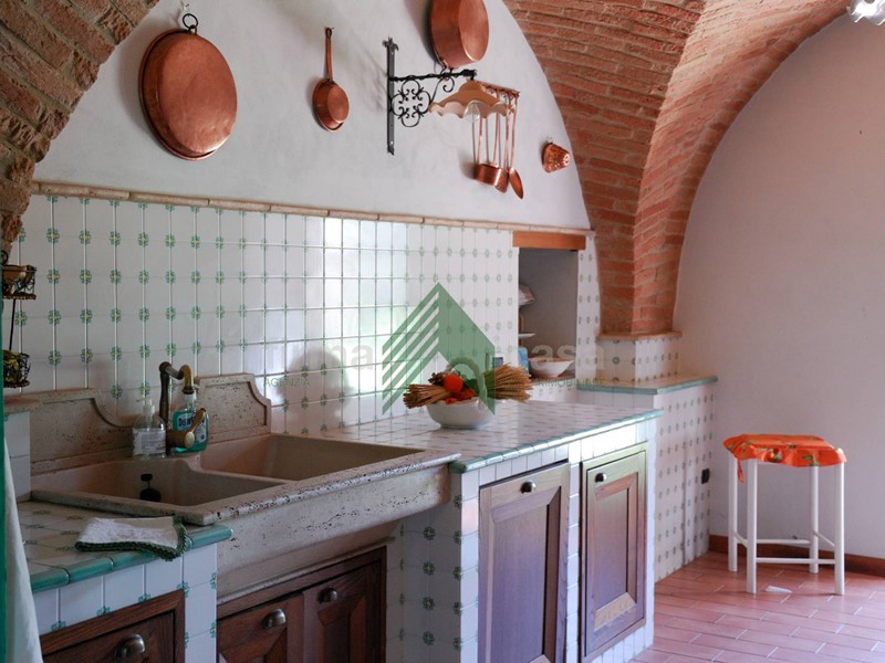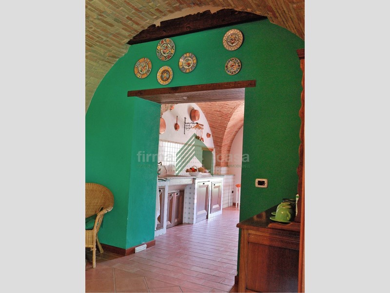 Circondato dalle colline che costeggiano la valle del Tordino, in un contesto di pace e serenità che solo la campagna sa regalare, si trova questo splendido casale rustico, risalente alla fine del '700, di metratura generosa, con terreno circostante. La residenza, che si presenta in ottimo stato, è stata sapientemente ristrutturata con la maestria di chi ha voluto realizzare una dimora funzionale e dotata di ogni comfort, pur non rinunciando al fascino tipico dell'architettura e del paesaggio rurale. I soffitti a volte e con capriate in legno si fondono ai marmi dei due camini e delle scale, al ferro battuto dei corrimani, alla pavimentazione in cotto, al legno massello utilizzato per realizzare gli infissi, con doppio vetro e a taglio termico, gli scuretti interni e le porte intarsiate. Per raggiungere il massimo del benessere, si è scelto di utilizzare un impianto di riscaldamento a pavimento, assicurando anche un'adeguata attenzione al risparmio energetico. E' stato anche installato un impianto di aspirazione centralizzato. Grande cura è stata riservata ai bagni, di metrature comode, impreziositi da ceramiche decorate a mano con tonalità che rimandano allo stile vietrese. Il casale di circa 430 mq totali, è distribuito su due livelli e organizzato in dodici vani, tre bagni ed un locale lavanderia, oltre al portico antistante l'abitazione, di circa 30mq e al balcone del primo piano. E' parte della vendita anche una dependance, formata da quattro vani, limitrofa al corpo principale. La proprietà, completamente recintata, comprende anche il terreno circostante, semipianeggiante, di circa 4000mq. La tenuta è circondata da un oliveto di circa 6 ettari che è possibile acquistare con prezzo da computare a parte. La posizione occupata, riservata ma anche prossima al centro della città, rendono questa proprietà una struttura dalle infinite potenzialità e di grande prestigio. E' anche possibile arricchire la proprietà con l'acquisto di una suggestiva cappella privata, risalente al 1500, realizzata interamente in pietra e mattoni, sita nei pressi del casale.