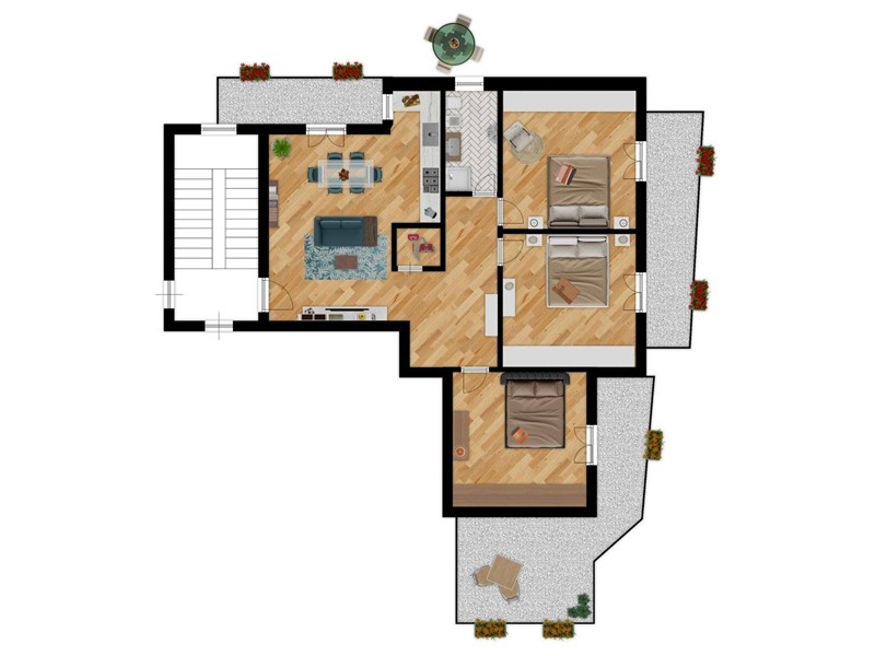 Inoltre, l'appartamento dispone di tre bei terrazzi vivibili.