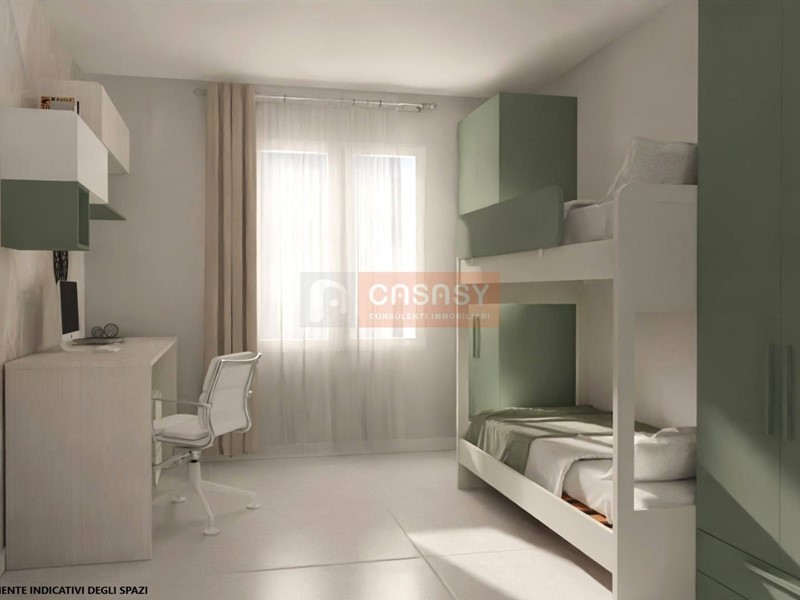 L'appartamento è così composto: ingresso a disimpegno, tinello, cucinino separato, salone, due camere matrimoniali, bagno con finestra e due terrazzi, uno dei quali offre una vista mare panoramica.