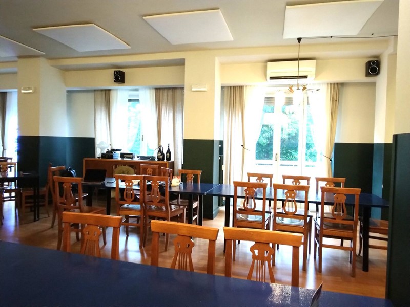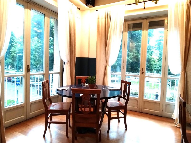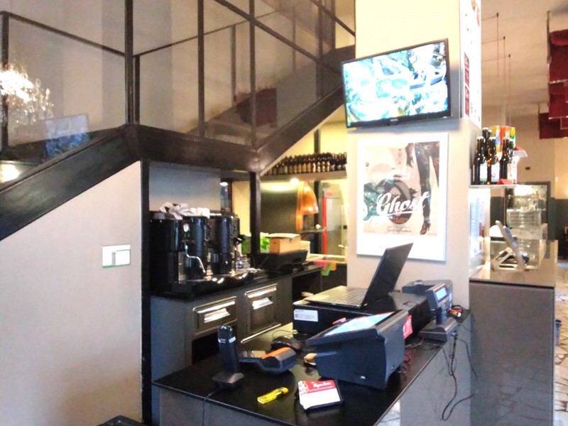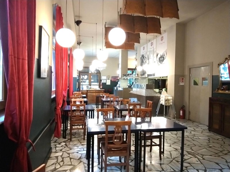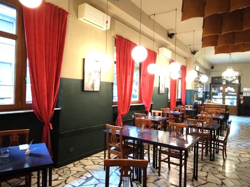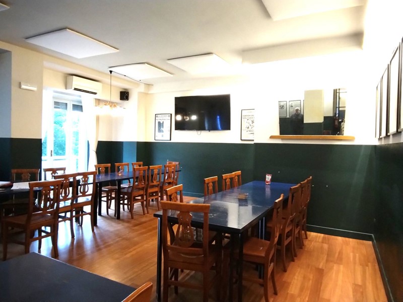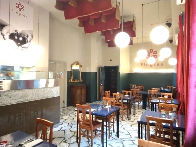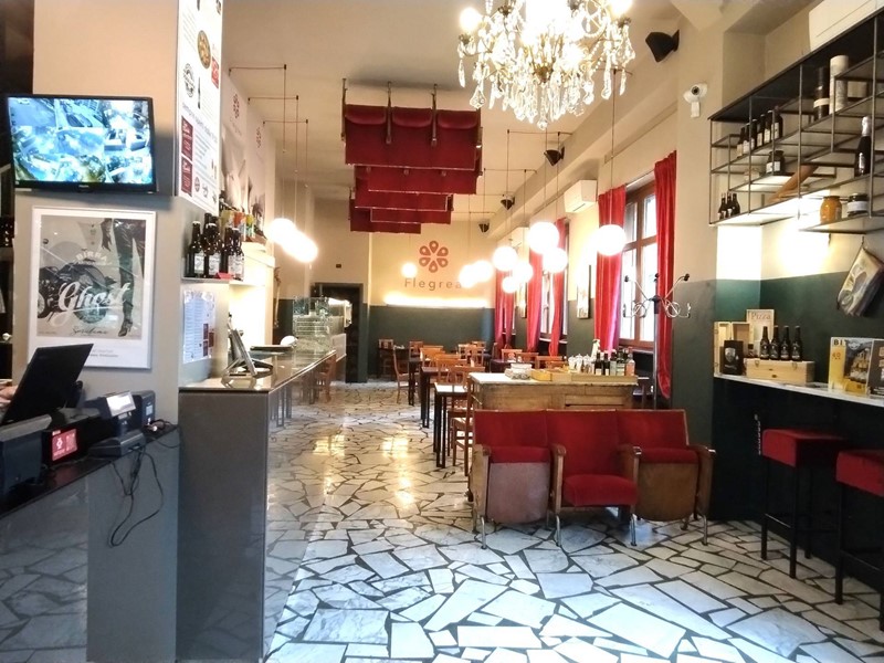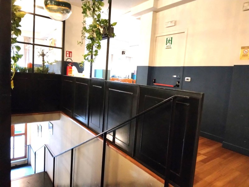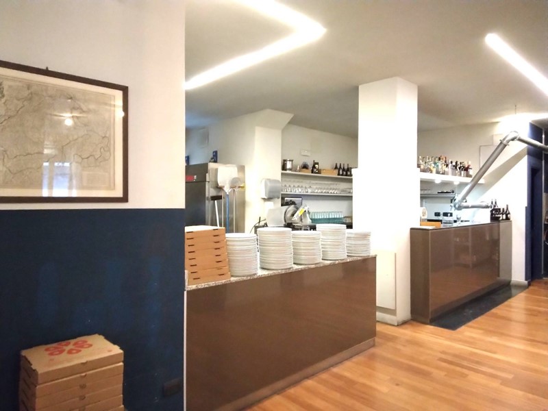 Il locale, affittato fino al 2028 e attualmente adibito a pizzeria/ristorante, si compone al piano terreno di ingresso su sala da pranzo, cucina, bancone mesci-vivande, bagni, punto cassa e al primo piano di tre sale da pranzo (di cui una privata), bagni, balcone con vista su Corso Massimo dAzeglio. Sono inoltre presenti canna fumaria per 3 forni a legna per pizza e 2 montavivande per il passaggio del cibo da un piano allaltro del locale.