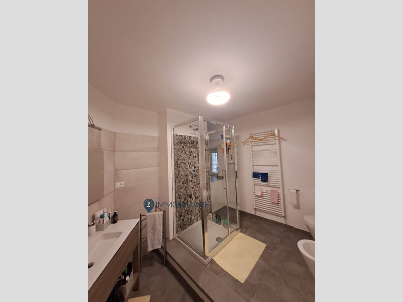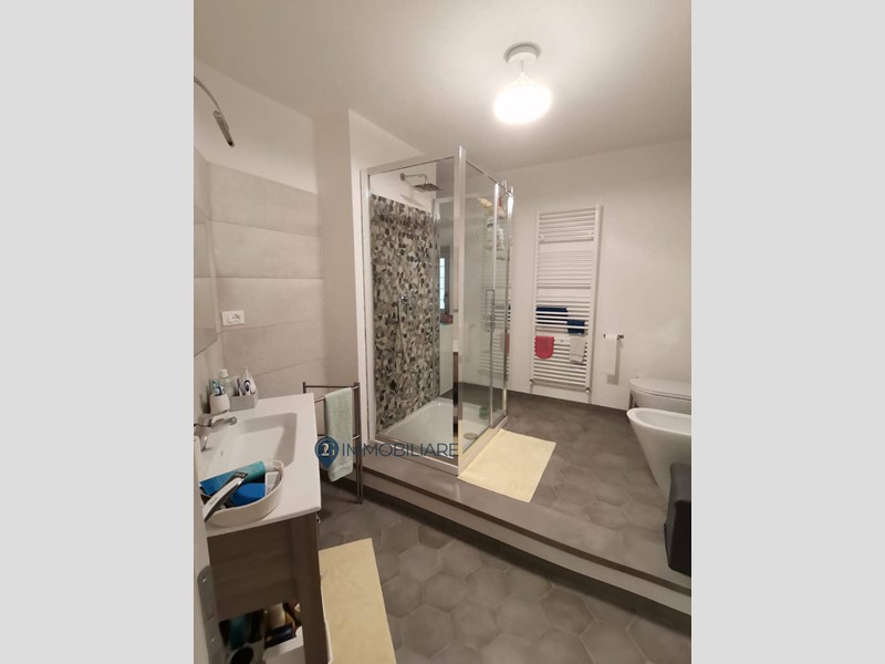 L'appartamento in bifamigliare, con una superficie totale di 100 mq, si trova all'ultimo piano di un edificio esclusivo e gode di una vista mozzafiato su tutto il paesaggio circostante.