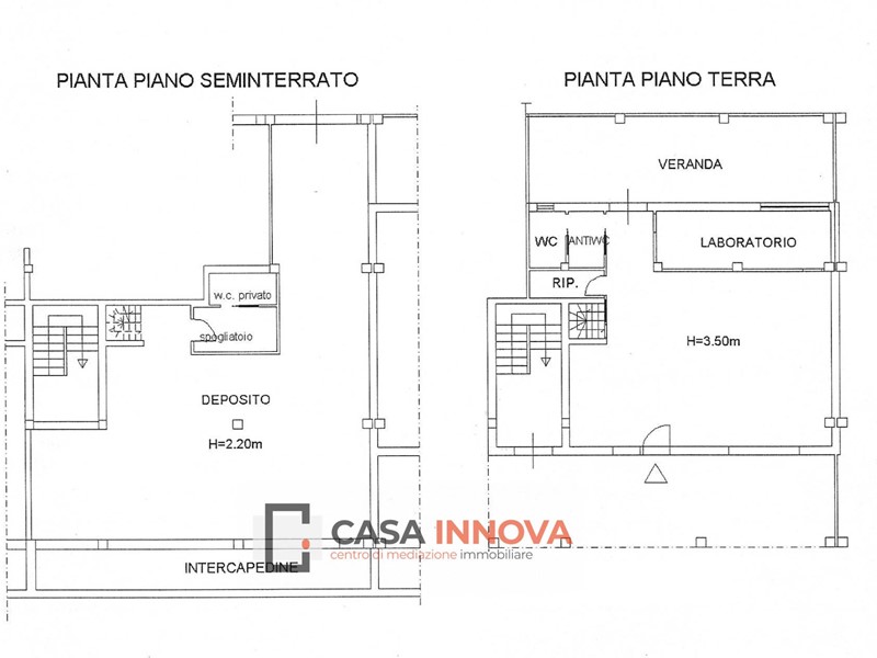 Al piano seminterrato, raggiungibile tramite una scala interna, troviamo un ampio deposito con spogliatoio e wc privato, per una superficie complessiva di circa 80 mq .