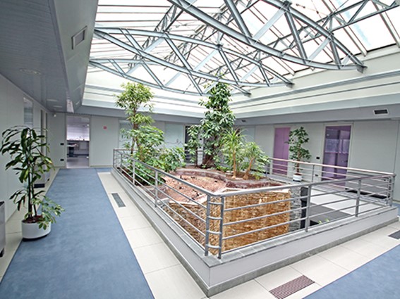 Spazi interni totalmente open space con divisione interna tramite pareti mobili, pavimentazione flottante, impianto di riscaldamento e condizionamento, ascensori e montacarichi.