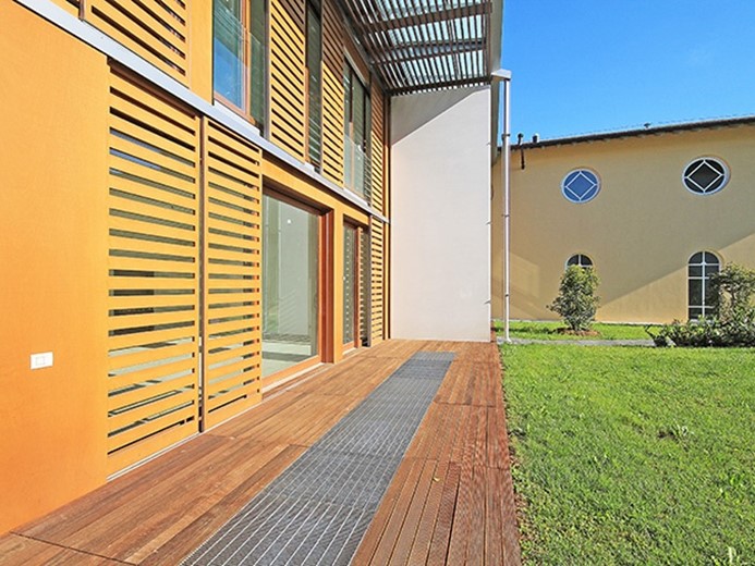 Prestigiosa e moderna porzione indipendente di mq 150 dotata di mq 50 di terrazza solarium al piano superiore, 44 mq di giardino esclusivo e mq 114 di spazio al piano interrato internamente collegato tramite scala interna e comprensivo di grande automriessa tripla in larghezza.