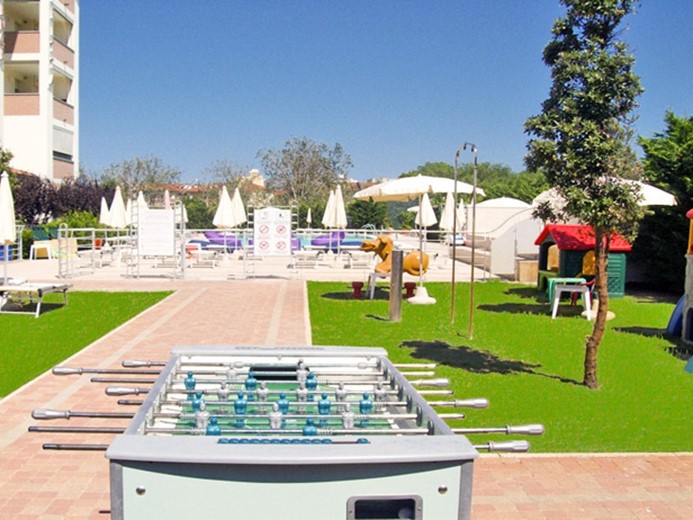 La struttura è dotata di un ampia area solarium a bordo piscina, grande parcheggio privato interno, ascensore e tutti i moderni comfort.