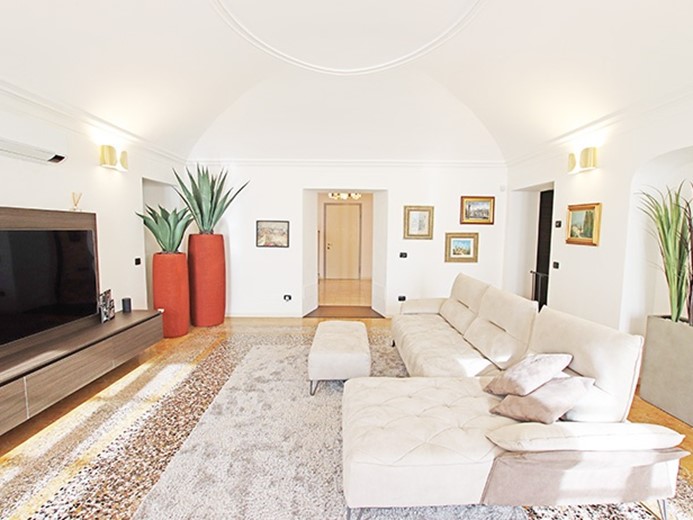 Prestigioso immobile indipendente di mq 330 dislocato su 2 livelli dotato di 200 mq di giardino privato inserito in importante contesto di villa nobiliare completamente lussuosamente ristrutturata.