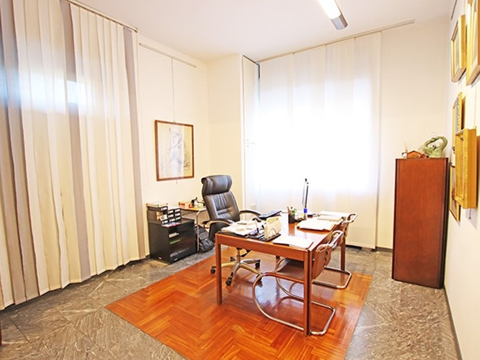 Al piano terreno, ingresso privato da via Statuto con giardino piantumato e terrazzo, ingresso, 5 uffici e bagno oltre giardino sul retro.