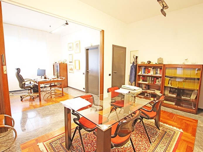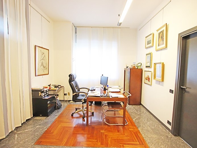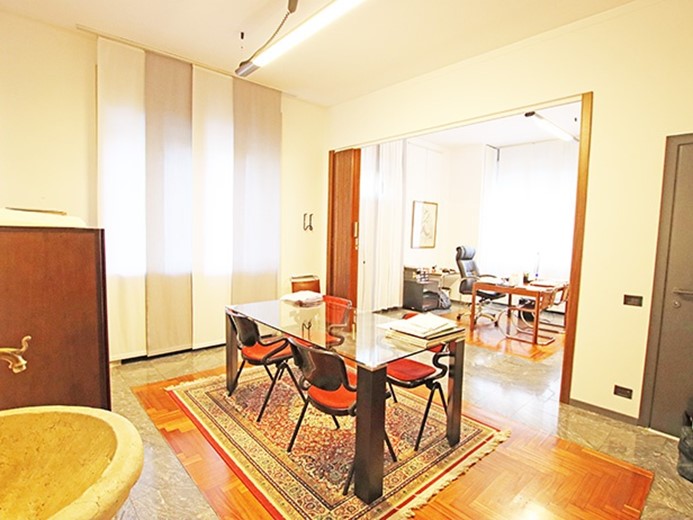 Al piano terreno, ingresso privato da via Statuto con giardino piantumato e terrazzo, ingresso, 5 uffici e bagno oltre giardino sul retro.