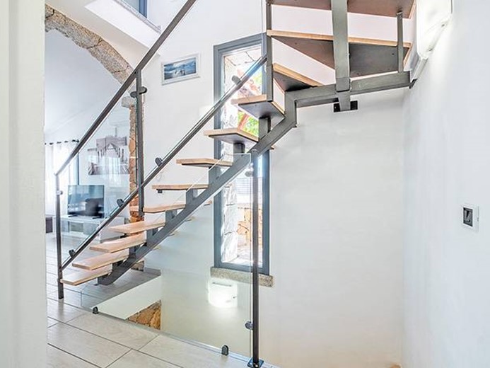 L'immobile è internamente composto da ampio soggiorno con camino, cucina abitabile, camera padronale con bagno, ulteriori 3 camere da letto con ulteriori 2 bagni, lavanderia, soppalco con zona letto, cantina vini, ampia piscina con doccia esterna.