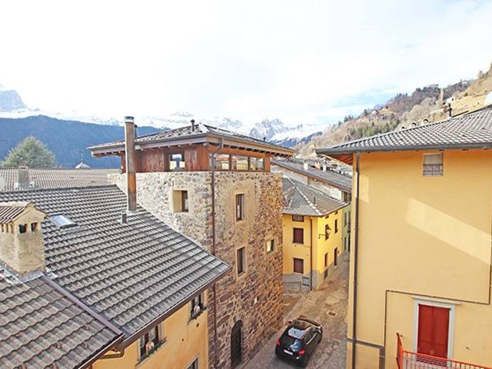 La proprietà, attualmente da ristrutturare, conseva il fascino ed i pregi delle case d'epoca padronali, dotata di ingresso principale tramite la terrazza panoramica frontale, pavimentazioni in legno, piatra e mosaici originali, camini e caminetti, antica cantina vini ed affascinanti locali a volte in pietra, l'immobile gode di una vista panoramica a 360° sulle montagne circostanti, sul campanile della chiesa e sul centro storico del paese.