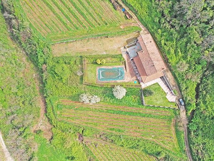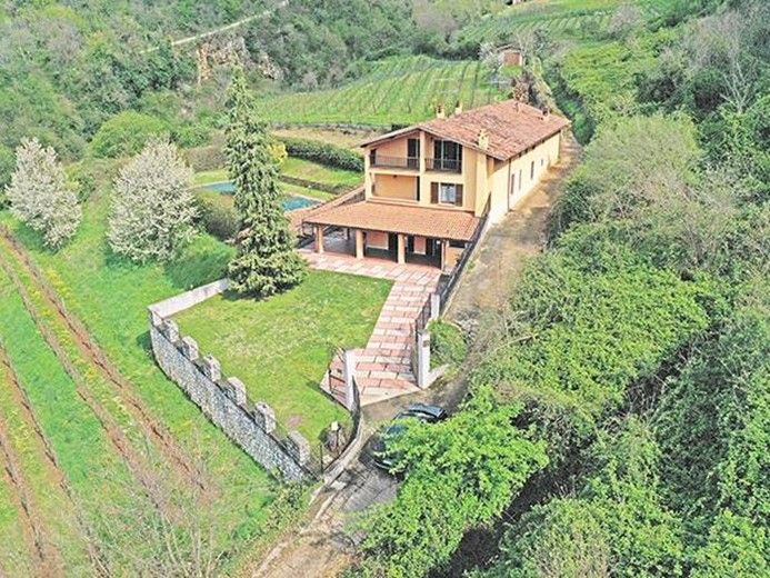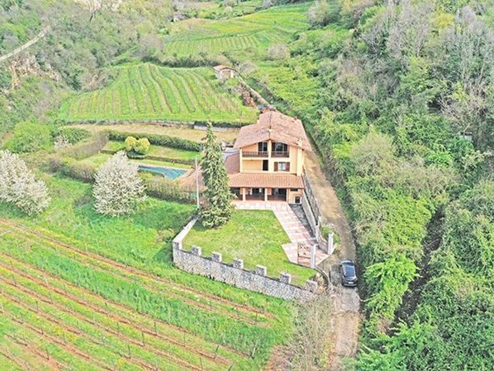 Proprietà immobiliare comprendente casale panoramico di mq 460 composto da 2 fabbricati attigui indipendenti oltre giardino con piscina e 33.700 mq di terreni collinari di cui 16.000 mq ad uso vigneto attualmente non produttivo.