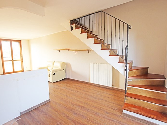 Al piano primo ampio balcone di ingresso, ampio soggiorno con zona cucina semi separata (apribile a totale open space) con accesso al balcone di servizio, zona lavanderia/ripostiglio, bagno completo.