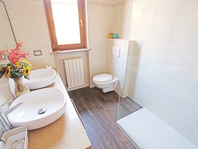 L'immobile si trova in ottime condizioni, dotato di pavimentazioni in parquet, bagni in gres moderno, infissi in legno con doppio vetro, riscaldamento autonomo, griglie di sicurezza, tendone da sole, al piano superiore tetto in legno a vista con lucernai, possibilità di installazione di aria condizionata gia prevista condominialmente.