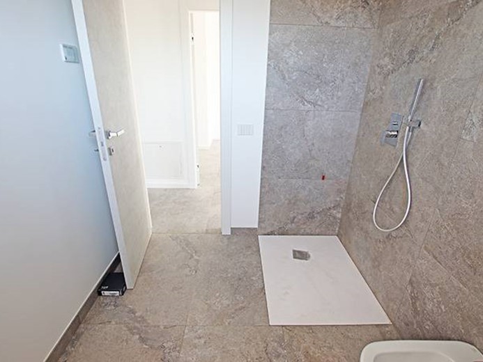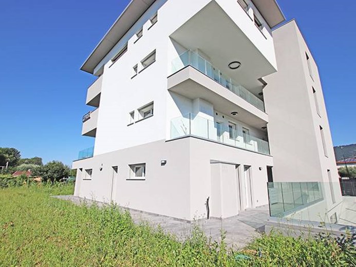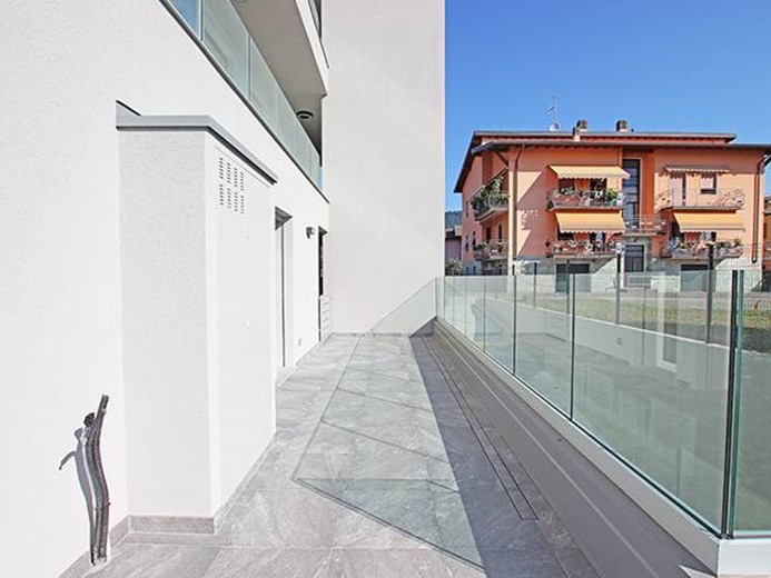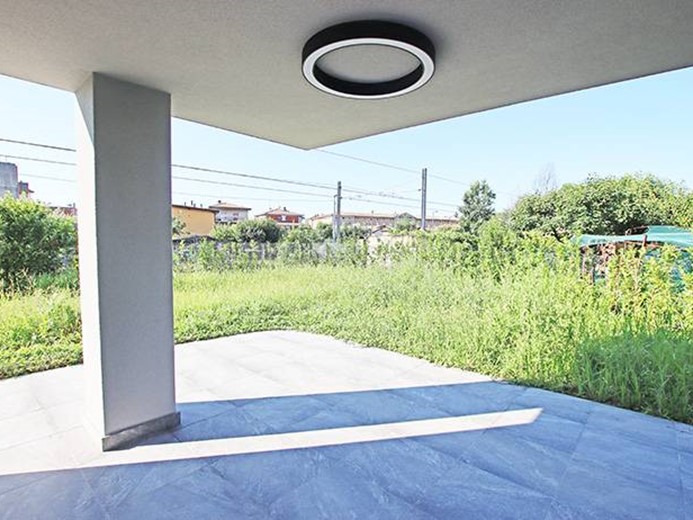 Moderno e pregevole appartamento quadrilocale di mq 107 dotato di 360 mq di giardino, 20 mq di portico, 43 mq di lastrico solare ed ingresso coperto in edificio di nuova costruzione in classe A4.