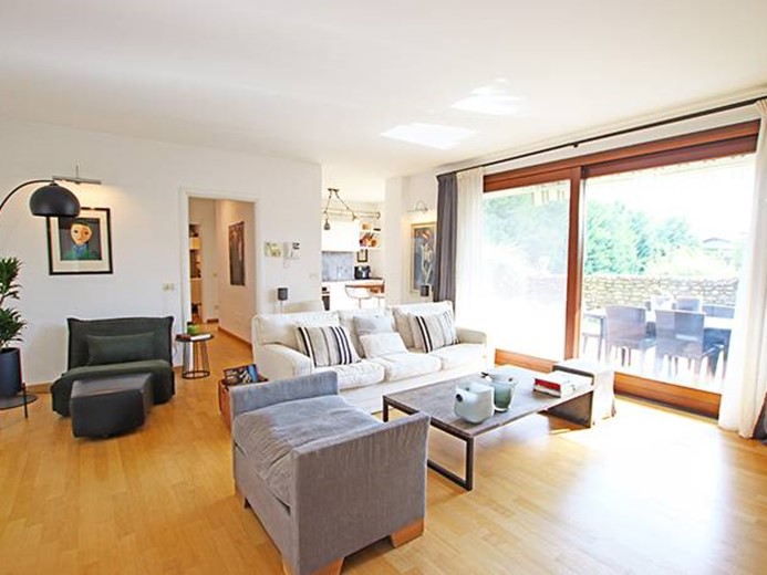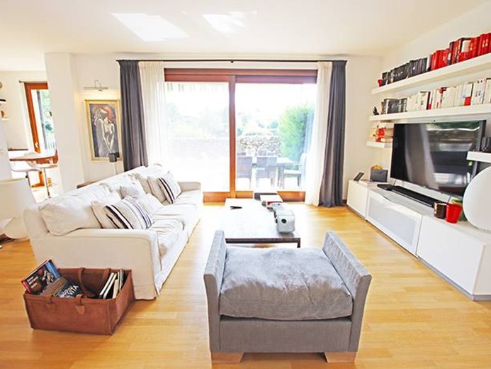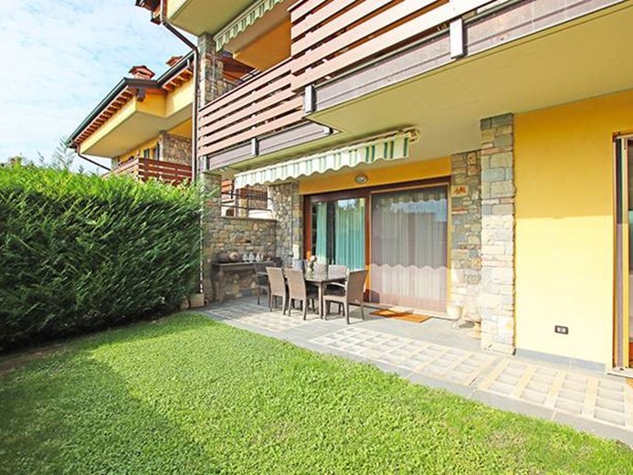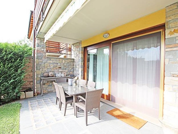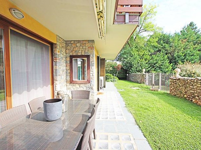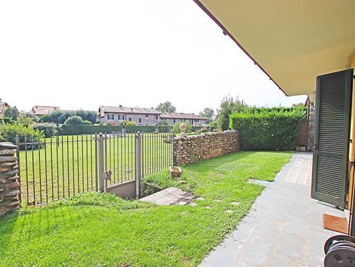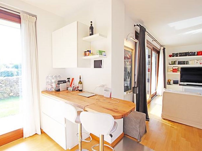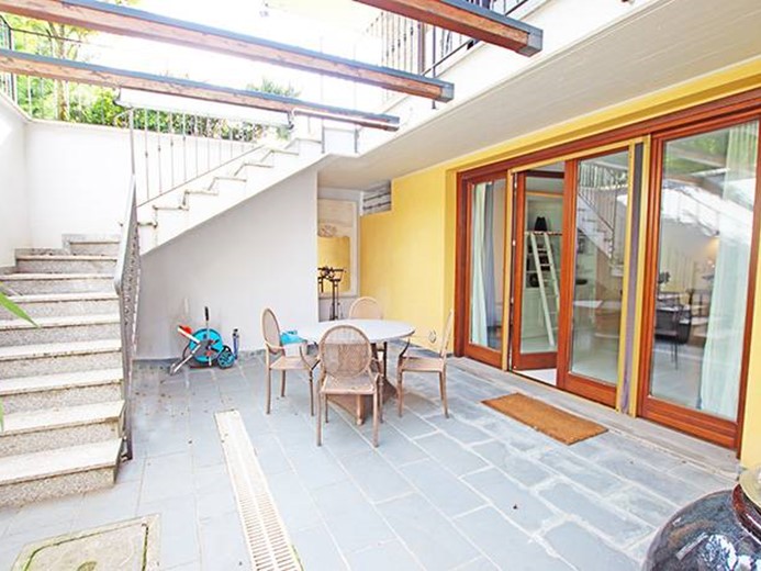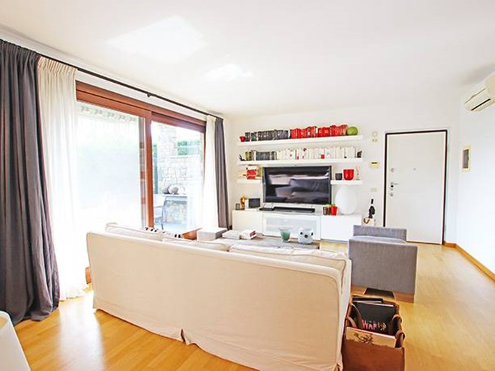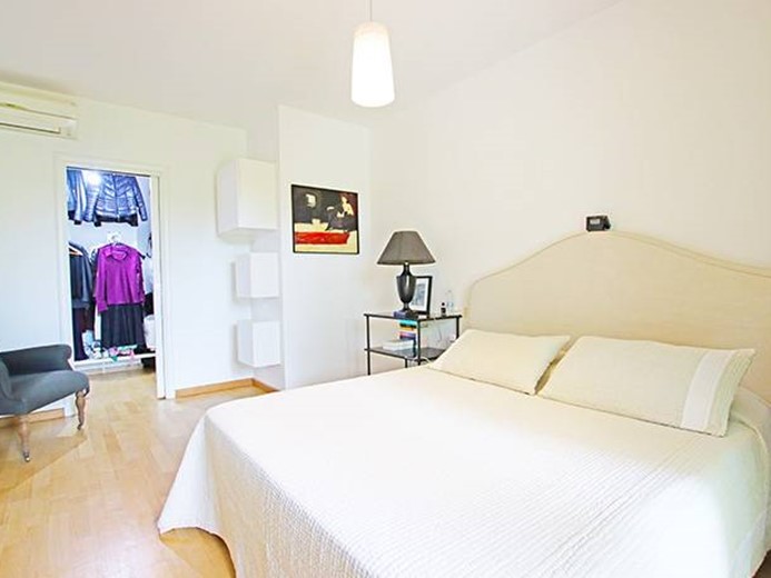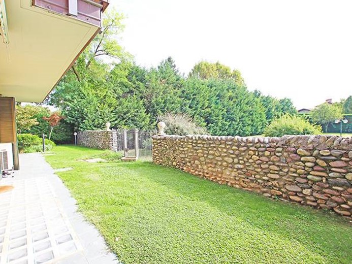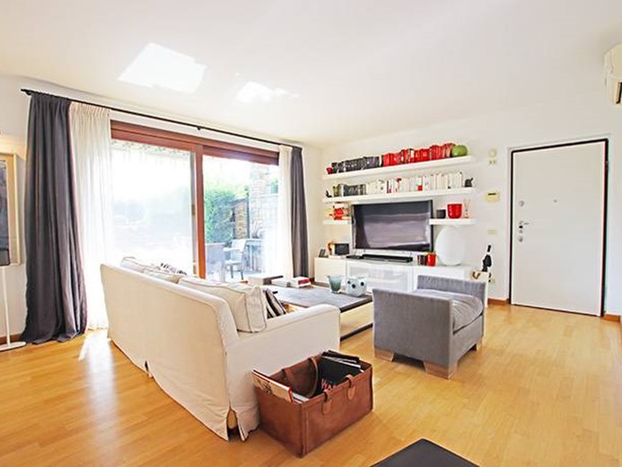 Al piano terreno ampio soggiorno con grande porta finestra con accesso alla terrazza principale ed al giardino, cucina semi separata con accesso al giardino, disimpegno, camera padronale con cabina armadio ed accesso al giardino, seconda camera con accesso al giardino, ampio bagno finestrato.