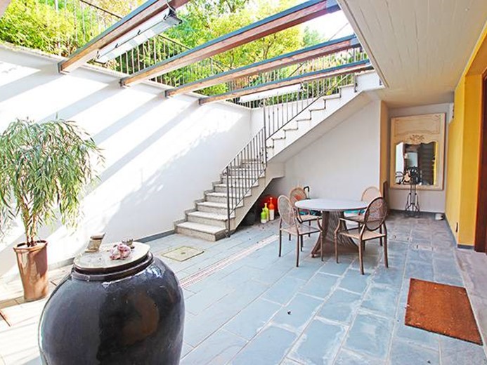 L'immobile è stato completamente ed elegantemente ristrutturato nel 2022, dotato di pavimentazioni in parquet e rivestimenti in moderno gres nei bagni, pavimento in parquet sbiancato nell'area interrata ad enfatizzare ulteriormente la luminosità dell'ambiente, riscaldamento autonomo con impianto a pavimento, aria condizionata, impianto antifurto, infissi termici performanti in legno con zanzariere, il giardino è perfettamente piantumato a prato inglese, dotato di alte siepi perimetrali per una privacy ottimale ed ampie terrazze con tendone elettrico, il giardino è dotato di un accesso indipendente privato al parco condominiale ed affaccia su un'ampia area verde ben curata.