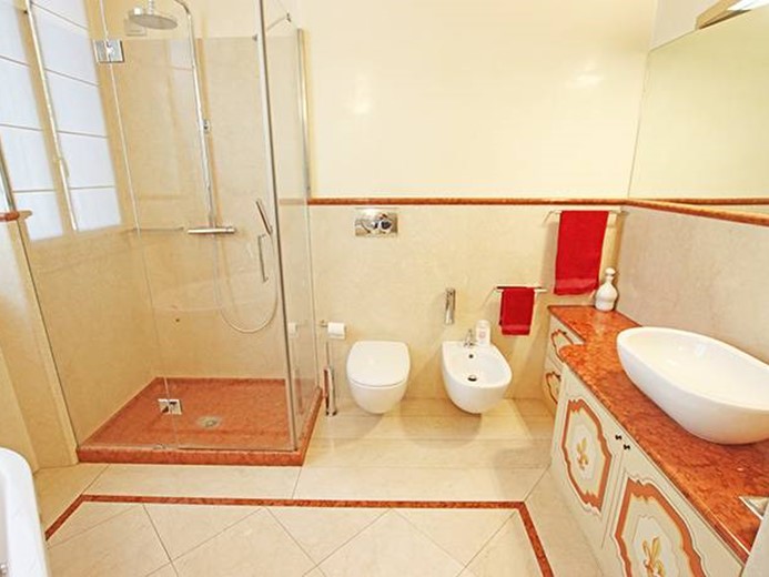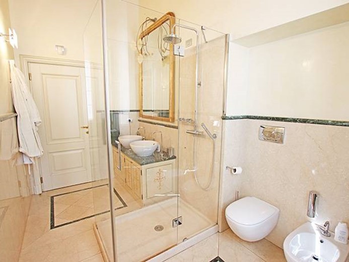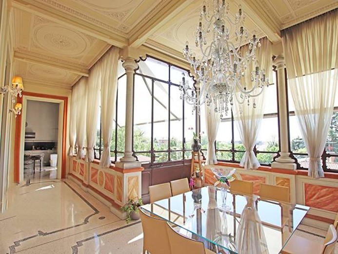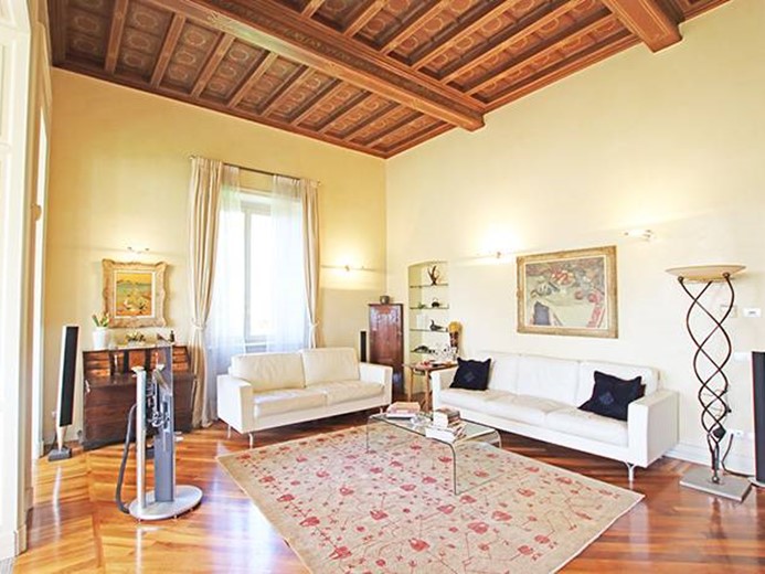 L'immobile è dotato di tutti i comfort di ultima generazione e rifiniture di grande pregio il tutto in condizioni realmente impeccabili, riscaldamento e raffrescamento a pavimento ed a parete con caldaia autonoma, impianto canalizzato per il raffrescamento estivo, impianto rete, impianto di antifurto con videocamere, pavimentazioni di grande pregio quali seminato veneziano, parquet di prima qualità, marmi, infissi in legno con performance termiche, soffitti interni con altezze di 4,30 metri dotati di casettoni in legno pregervolmente decorati tipici delle case nobiliari di inizio secolo, grandi e luminose finestre e porte finestre, camini in marmo, bouaserie, porte in legno massello laccate e pantografate.