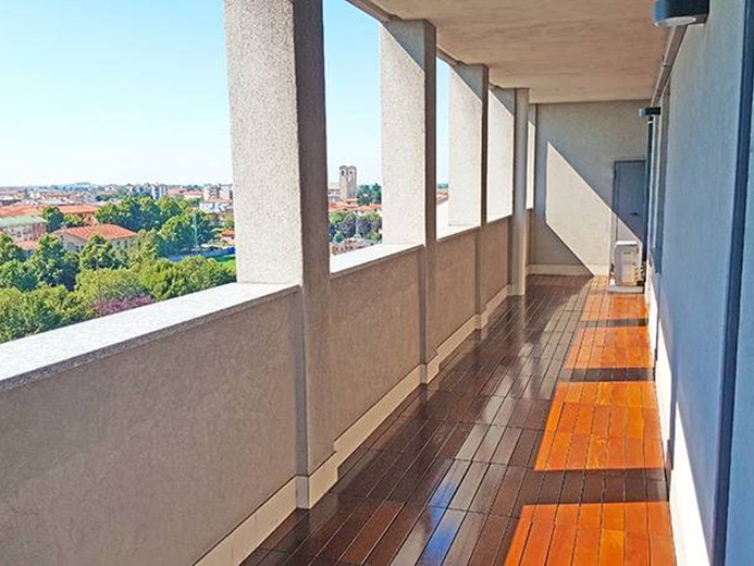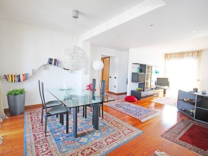 L'immobile si trova in perfette condizioni d'uso rifinito in parquet, dotato di serramenti nuovi, tapparelle in alluminio elettriche, caldaia per riscaldamento autonomo, aria condizionata con pompa di calore, terrazza con pavimentazione in legno teak flottante.