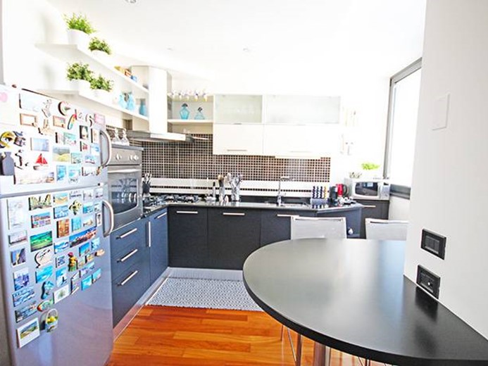L'immobile è internamente composto da un soggiorno ampio, cucina abitabile open sapce, 3 camere da letto, 2 bagni finestrati, lavanderia al piano ottavo.