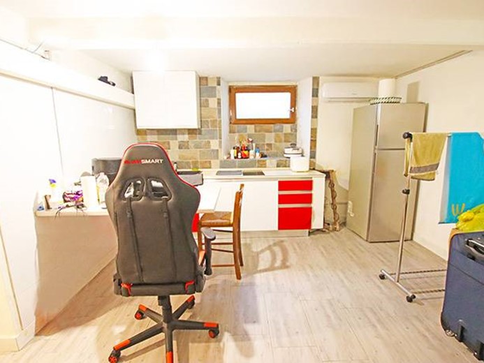 Al piano rialzato il monolocale è composto da un unico ambiente con cucina e living con accesso dal terrazzo privato e dal giardino, disimpegno ampio, bagno finestrato interno.