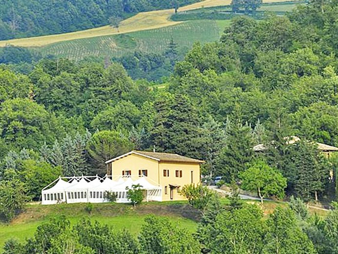 La proprietà sorge su 25.000 mq di prato e bosco con alberi secolari, ampio parcheggio e viale privato d'accesso alberato.