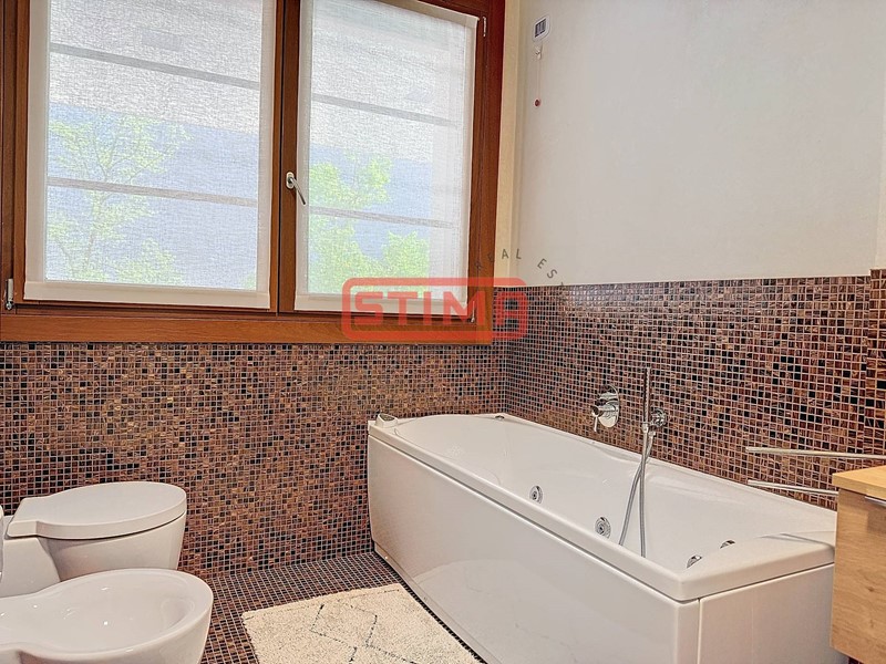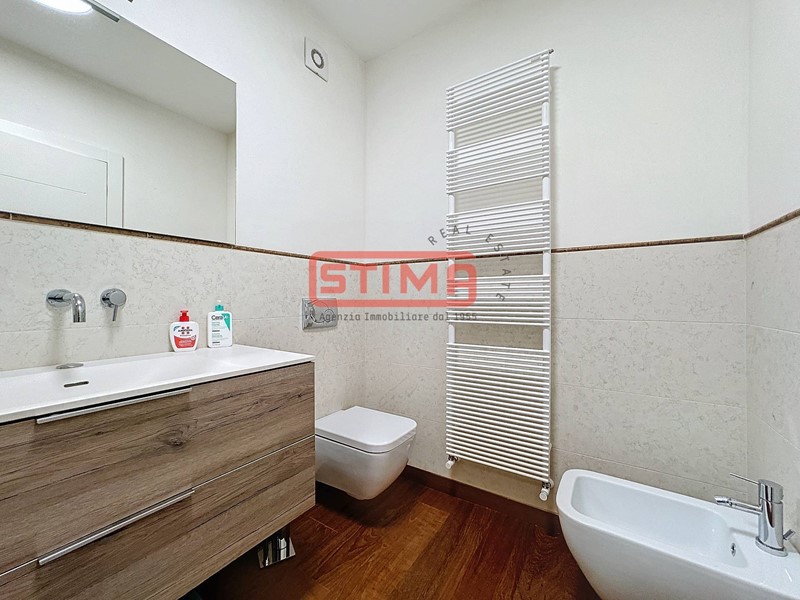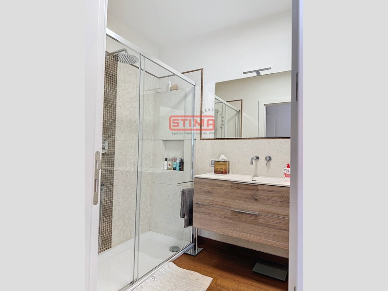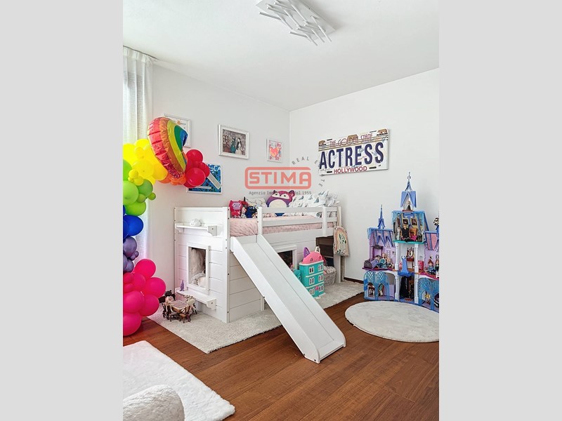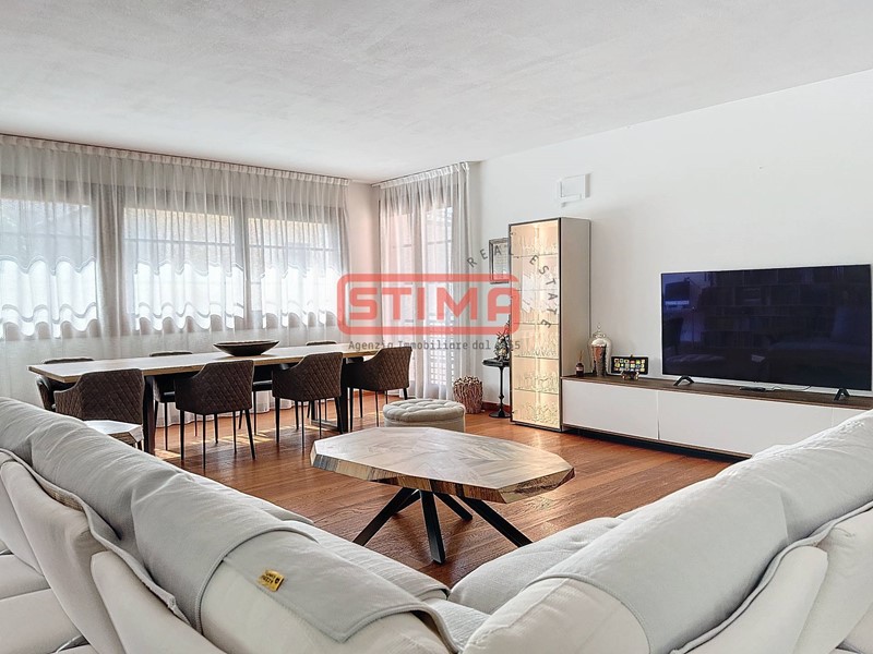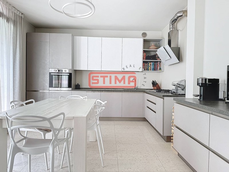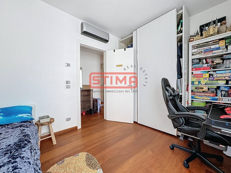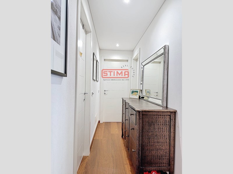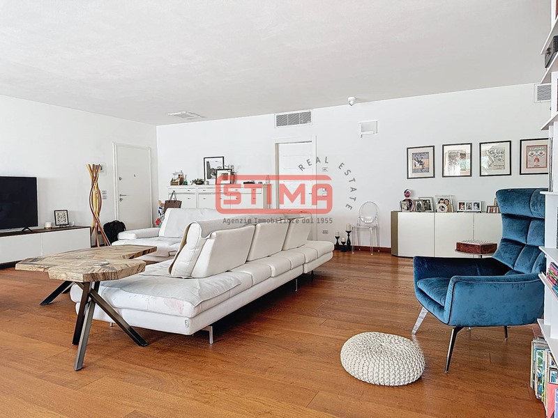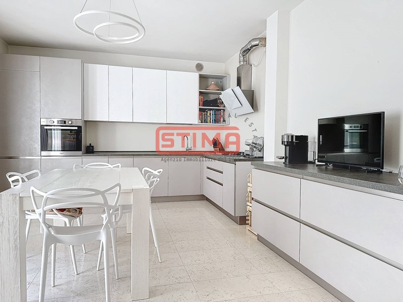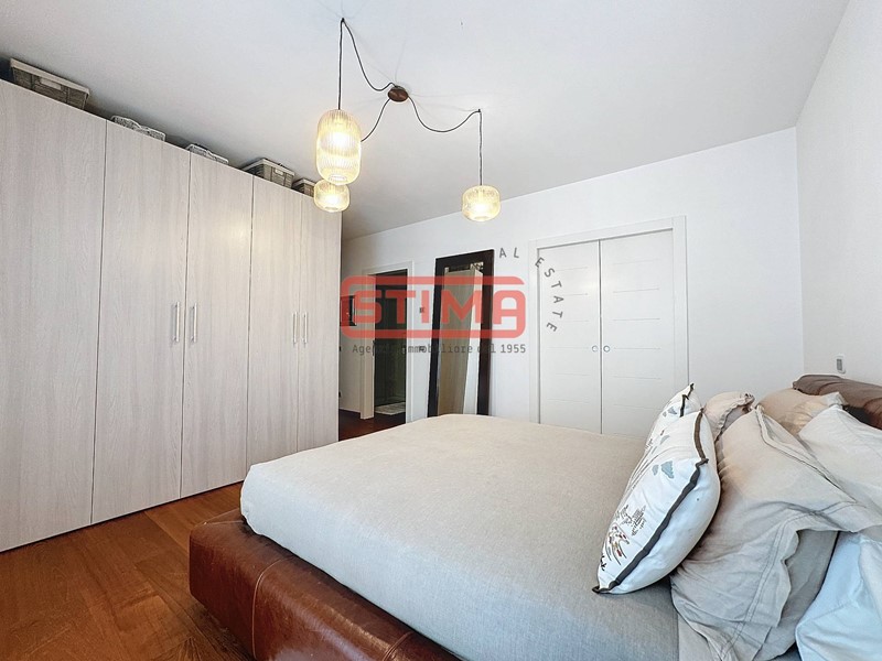 La cucina, completamente equipaggiata, confina con il salone e dispone di spazio sufficiente per ospitare un'area pranzo confortevole. La zona notte è composta da tre camere da letto, di cui una con bagno privato e cabina armadio, e altri due bagni finemente rifiniti, uno dei quali con vasca idromassaggio, oltre a una pratica lavanderia utilizzabile come ripostiglio. L'appartamento è dotato di riscaldamento autonomo a pavimento e aria condizionata, garantendo un'ottima efficienza energetica e un elevato comfort termico in ogni stagione.